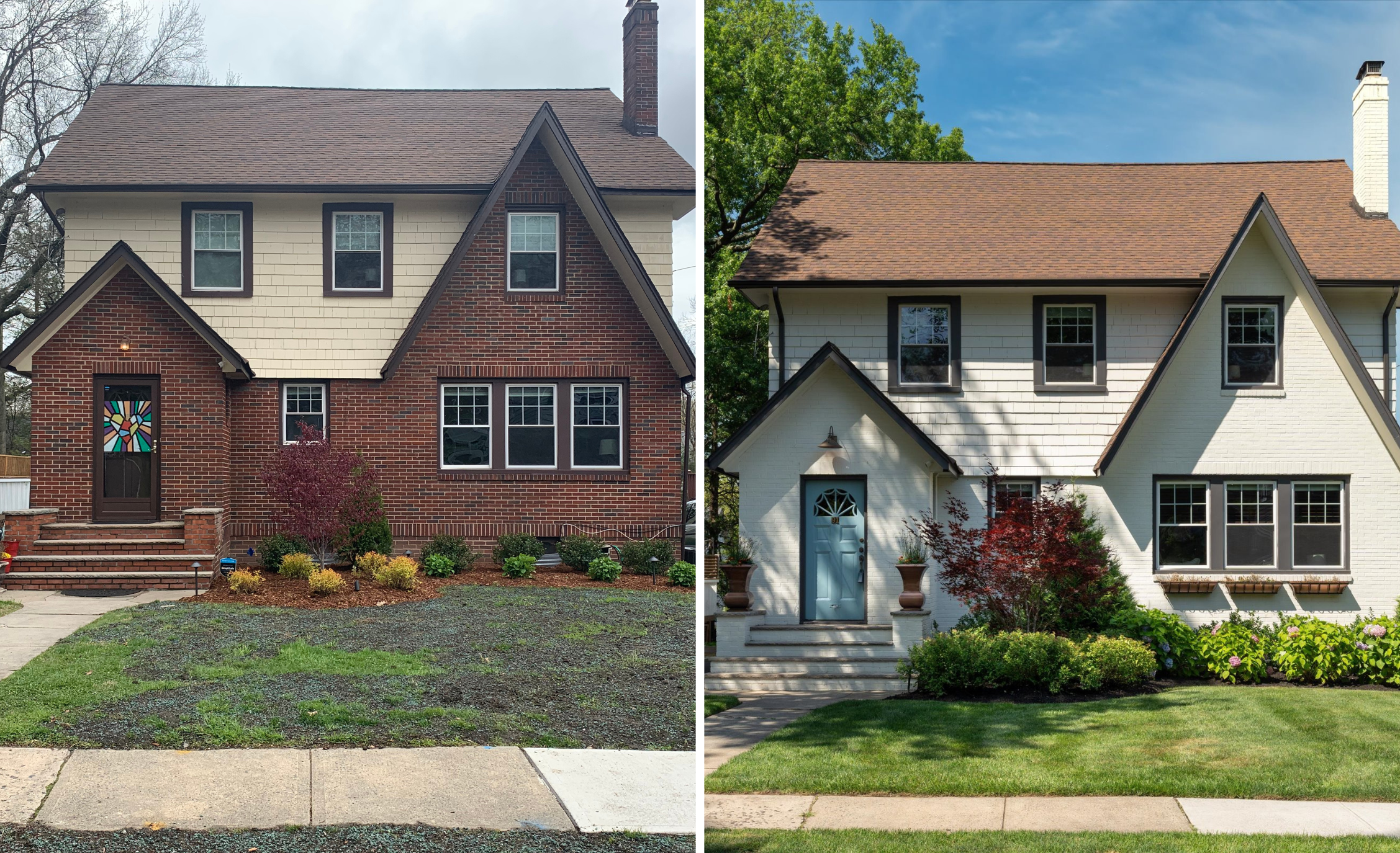 Over the years the shrubs in front of the house had taken over and obstructed the views through the windows across the front of the house. Working with a landscape designer, we completely re-landscaped the front of the house as well as rearranged and cleaned up the backyard. We also installed a sprinkler system to keep it all healthy, and hardwired uplighting to emphasize the texture of the house at night. The deep purple of the japanese maple next to the front porch is visible from the sofa through the windows, and now the sky and beautiful homes across the way are a soothing landscape that decorate the entire front of this home.
