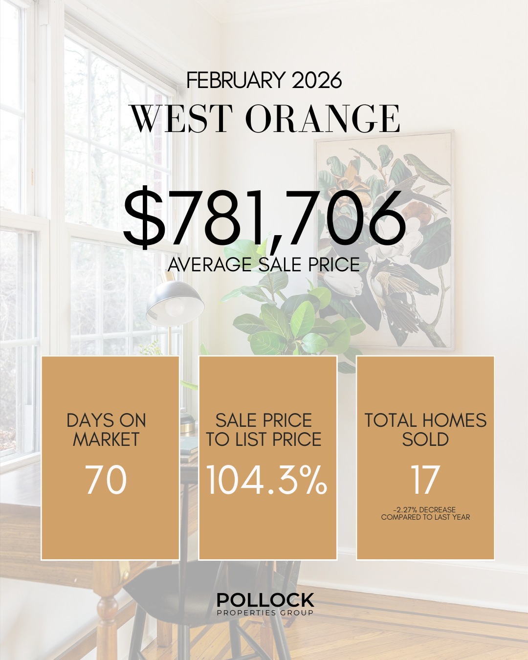 THE OVERVIEW: Across Maplewood, South Orange, and West Orange, the buyer demand from February remained incredibly strong despite winter weather and a traditionally slower season. Inventory continues to sit at historically low levels, creating a market where well-prepared homes move quickly and often sell above the asking price. Keep in mind as you read the town by town info that PPG homes sold an average of 20% over the list price in 2025: