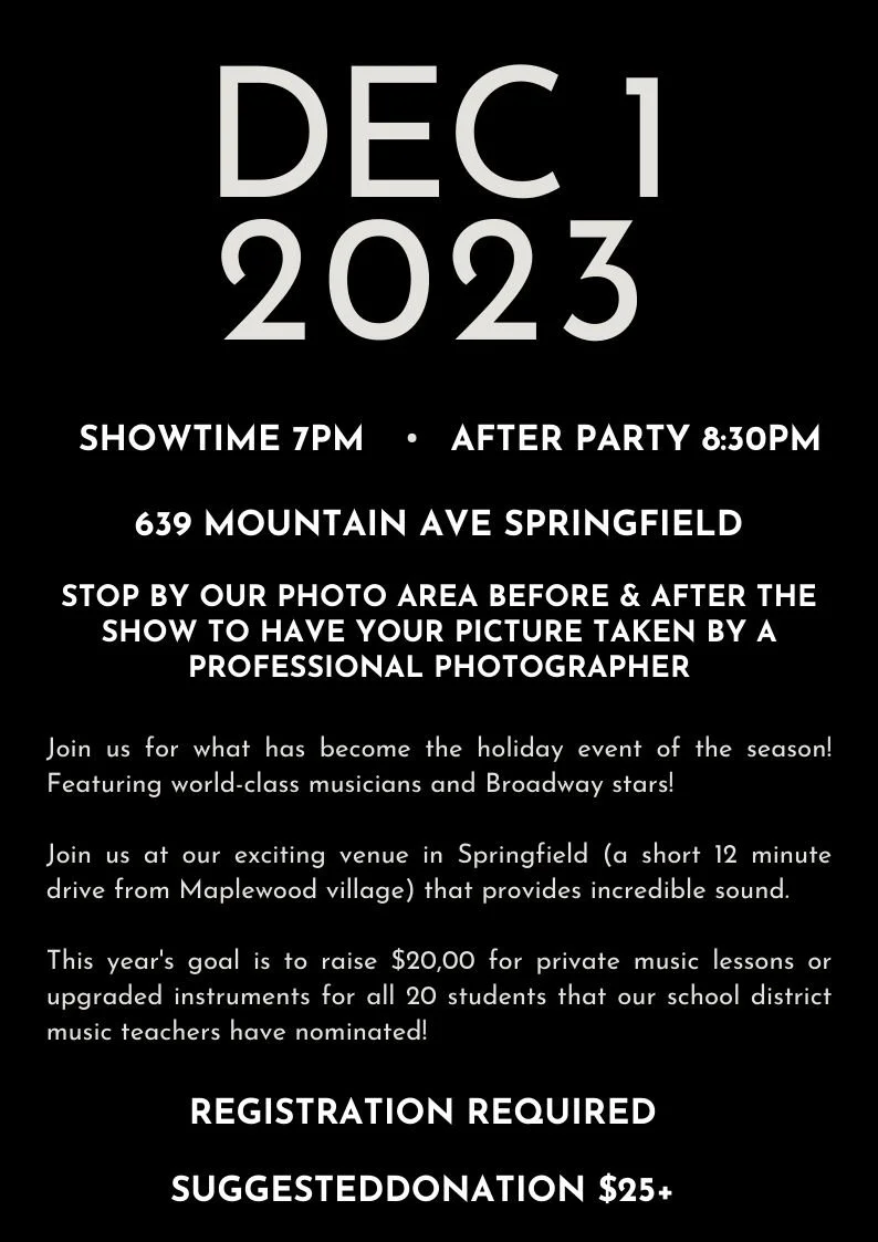 This year the band and singers will all be together again for a concert extravaganza titled "Light Up the Holidays". Broadway and recording industry favorites, such as Mark Evans-Mortelliti (Waitress, Mrs Doubtfire), Kevin Kern (Finding Neverland, Les Miz), Catherine Porter (The Music of Andrew Lloyd Webber, Guns N Roses), Elizabeth Welch (The Phantom of the Opera), Paige Faure (Cinderella), Cantor Peri Smilow, all led by music director Jason Loughlin.