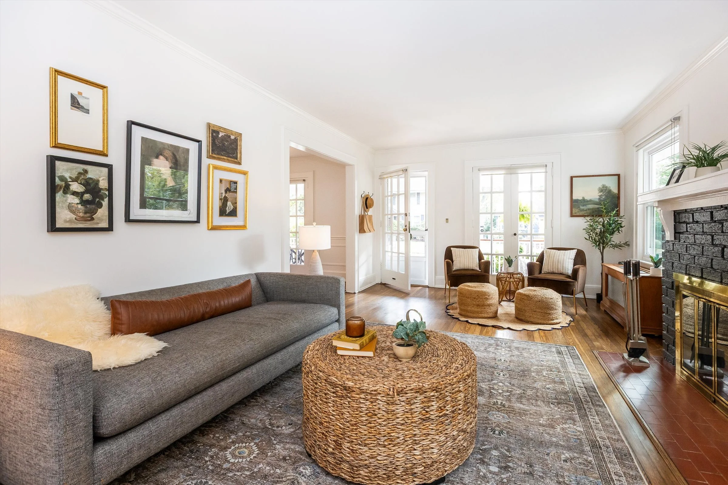 Welcome into this warm, open, inviting Maplewood home where every space tells a story. The front porch is a true gathering spot, perfect for morning coffee, heartfelt conversations, and entertaining. Inside, large windows and French doors usher daylight into the living room ideal for reading, studying, playing with the dog, or just relaxing together, all anchored by a central fireplace. A spacious dining room leads to the handcrafted kitchen, custom-built in Brooklyn, which is both stylish and functional, and great for hosting parties with its seamless flow. A powder room completes the first floor. Ascend the charming back staircase to the second floor, where you will discover a full bathroom and three generously sized bedrooms - the oversized primary bedroom feels especially airy, with built-in bookcases that blend storage and design.  A finished basement offers a bonus living space and plenty of storage, while the backyard barn studio, complete with sliding doors, electrical, and ductless split, is perfect for music, WFH, workouts, or a creative escape. With no wasted space, the home balances simplicity and soul. Located just a short distance to town, you can hear concerts in Memorial Park, and still enjoy privacy and peace at home.
