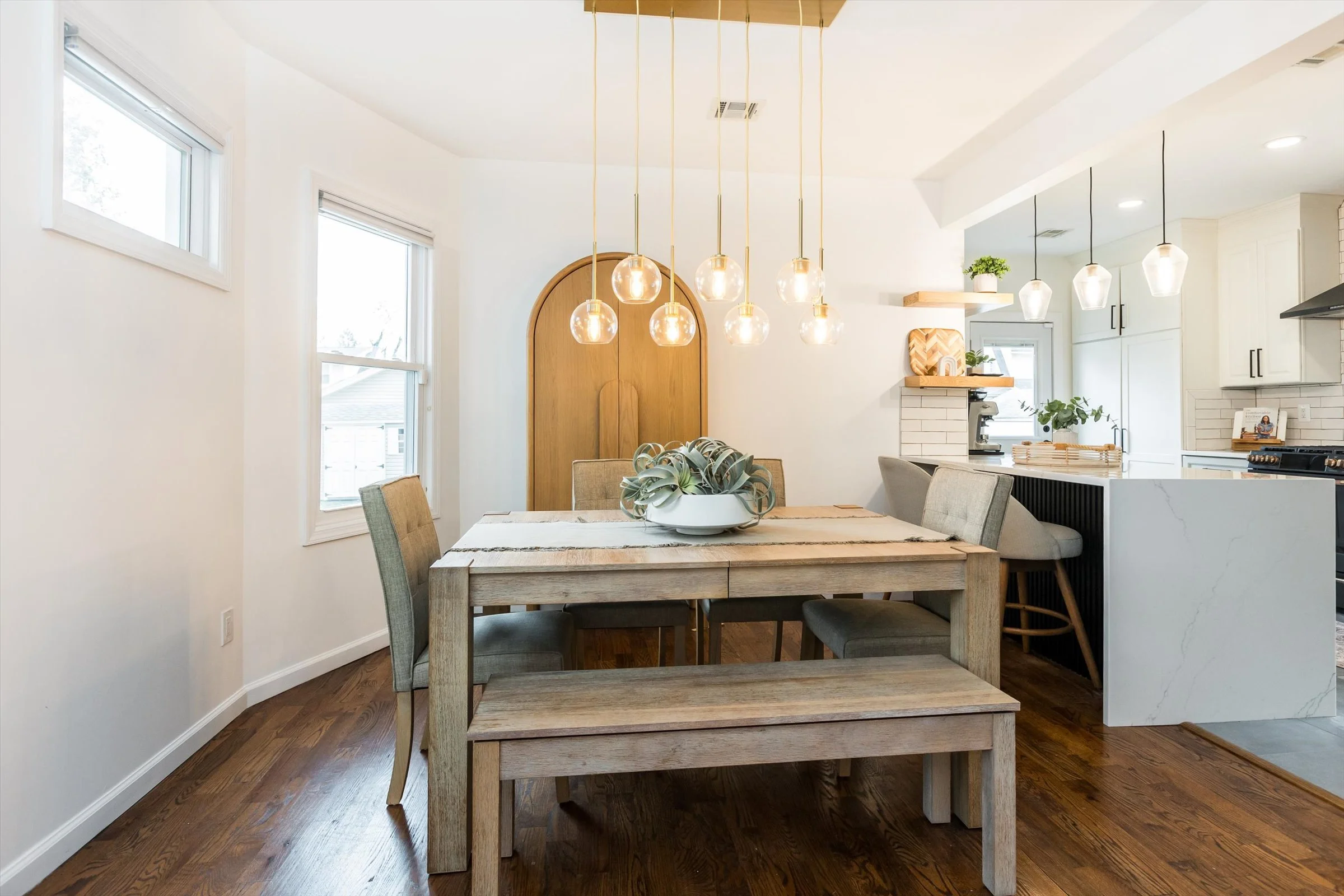 The back of the house gets the morning light and streams through the back glass door in the morning into the kitchen. It's one of our favorite things