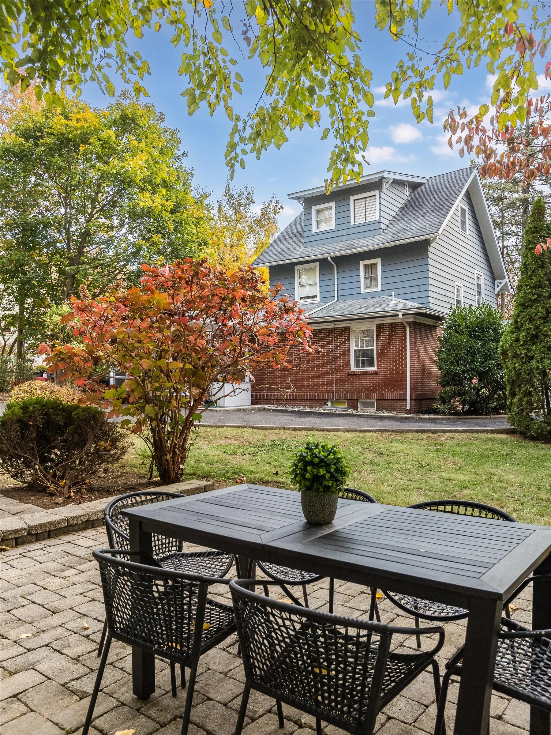 This distinctive Maplewood Colonial is situated on a peaceful, tree-lined street in close proximity to it all – beautiful Memorial Park with its duckpond and picturesque walkways, the fabulous dining and shopping in Maplewood Village, and the Midtown Direct train to New York. You’ll enter into the grand living room with high ceilings, built-in bookcases, ribboned hardwood floors, classic molding, a cozy, inviting fireplace, and big picture windows that invite tons of light in. The freshly updated kitchen features brand new counters, backsplash and newly painted wooden cabinetry. Proceed to the beautiful, oversized dining room that leads out to a magical screened-in sunroom, presiding over the spacious yard bursting with trees and shrubbery and open space perfect for jovial outdoor living. The second floor features three bright, sunny bedrooms and a refreshed full bath. The finished third floor is a discrete space just perfect for a primary bedroom with its own en-suite full bath. The partially finished basement offers a laundry room, a half-bath, and can serve as a home office, entertainment room and/or additional storage area. This home is sheer Maplewood with all its charm, style and convenience.