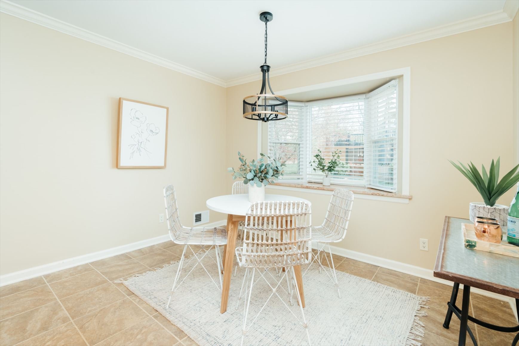 Open to the living area, this spacious dining area is the perfect location for holiday gatherings or where you can simply enjoy a weeknight get together with friends and family. The elegant recessed ceiling defines the space and the large window soak the area in beautiful sunlight. With easy connection to the kitchen, entertaining is made easy!