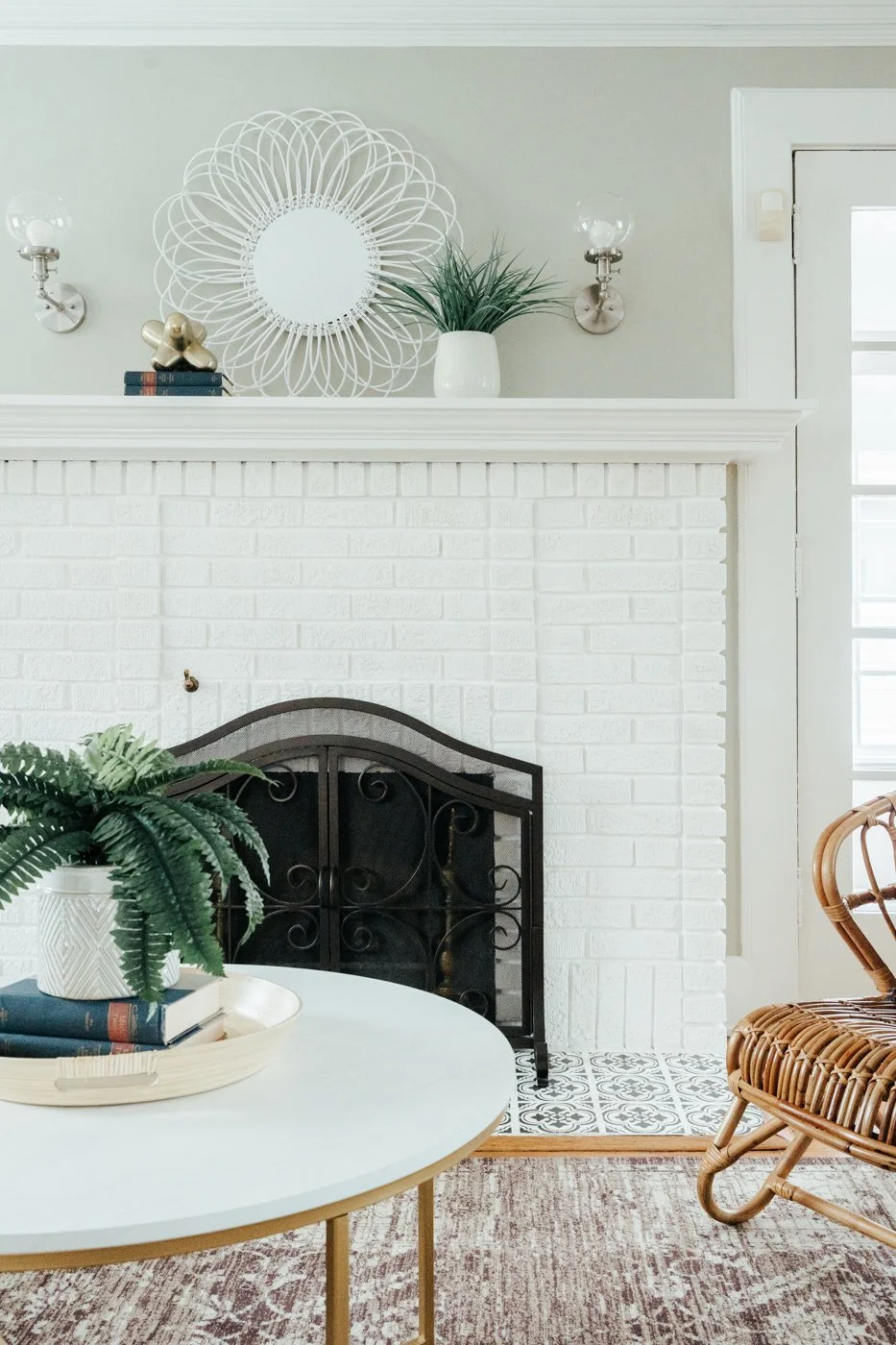 Enter this spacious living room and allow charm and detail to envelope you! The painted white brick front fireplace is the perfect spot to gather around with loved ones, while the beautiful woods floors and original moldings add a sense of history and charm. With easy flow to the other first floor living spaces, this generous living room offers practically as well as beauty