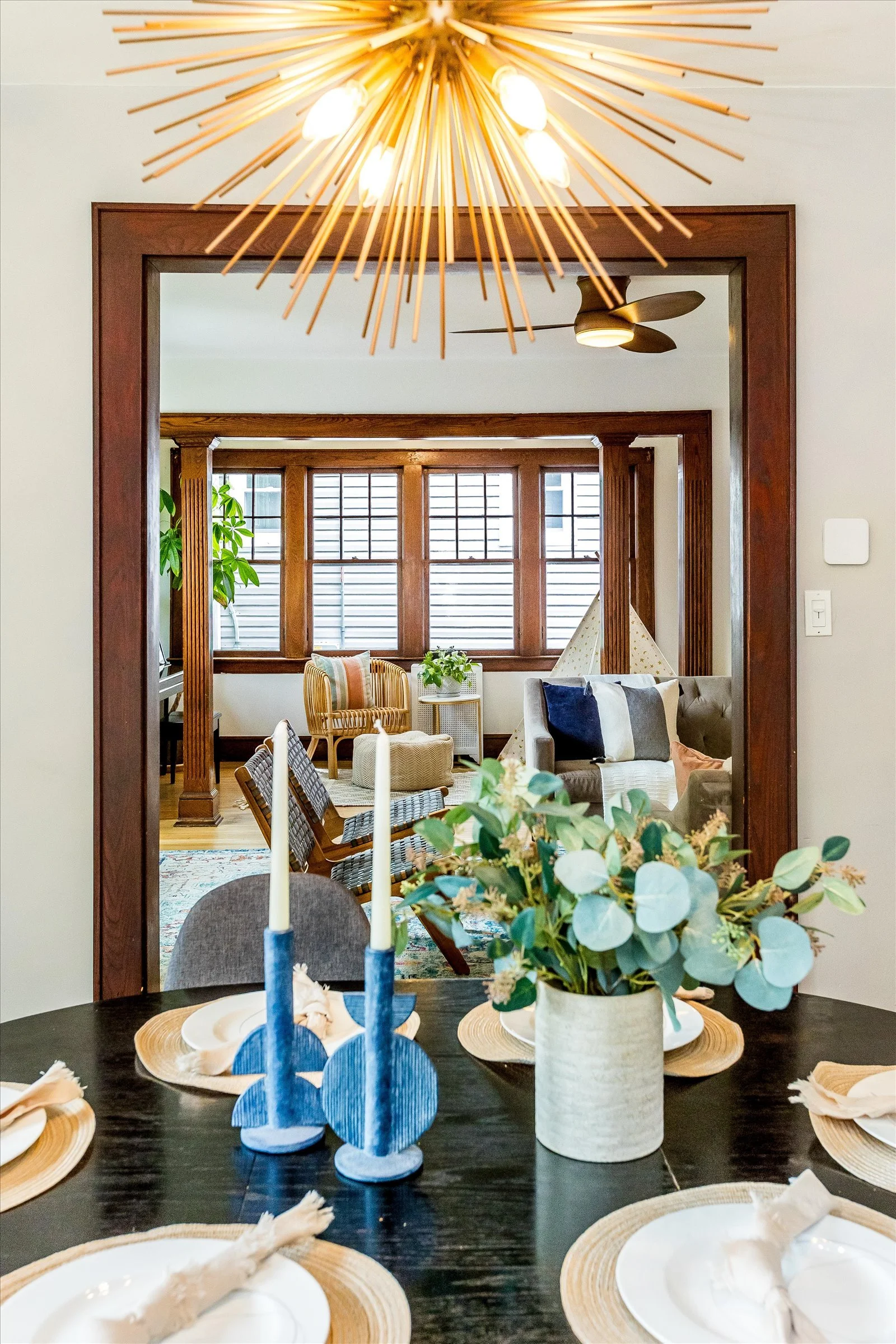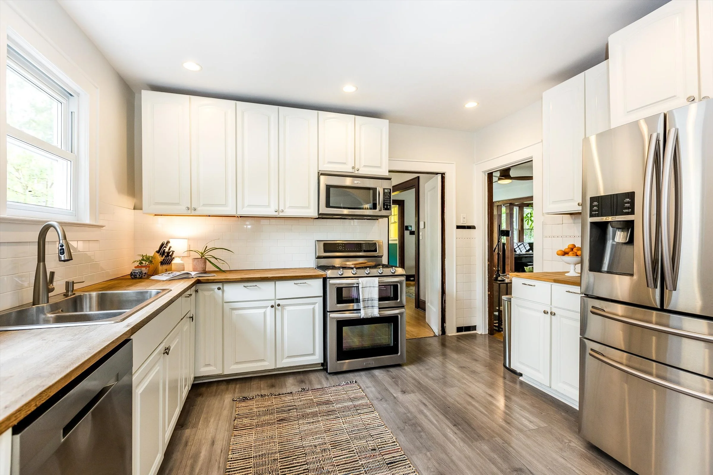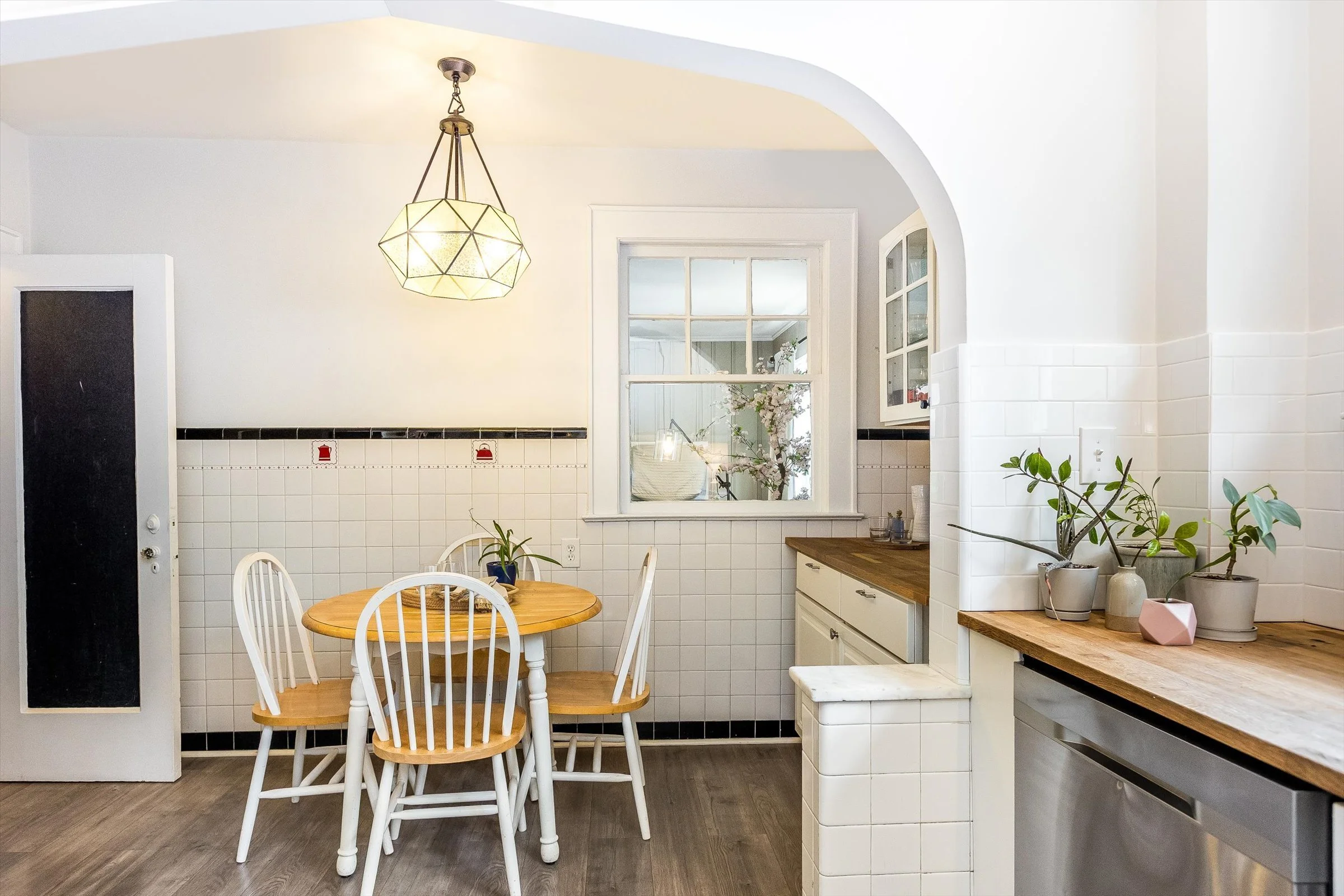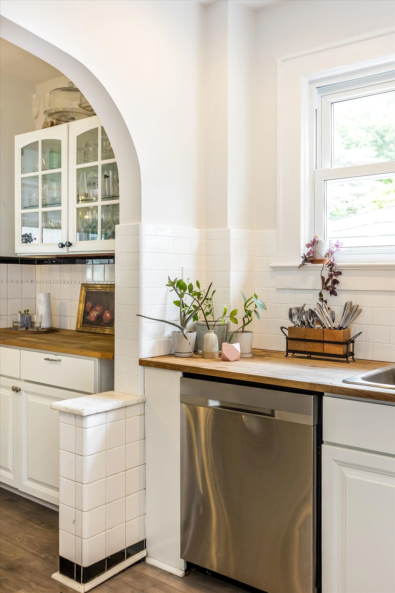 Built in 1926, this home has a rich history. It was originally designed for entertaining – even during Prohibition! The basement once served as a fully outfitted speakeasy, complete with a faux fireplace, two bars, built-in seating, and vintage details like wood paneling and mirrored accents. Over the years, it’s been home to teachers, artists, musicians, and gardeners. We added raised beds and rose bushes to complement the dogwood, lilacs, and honeysuckle that return faithfully each spring. The fenced yard has hosted everything from family pets to backyard chickens, and offers front-row seats to morning visits from goldfinches, foxes, rabbits, and even deer.