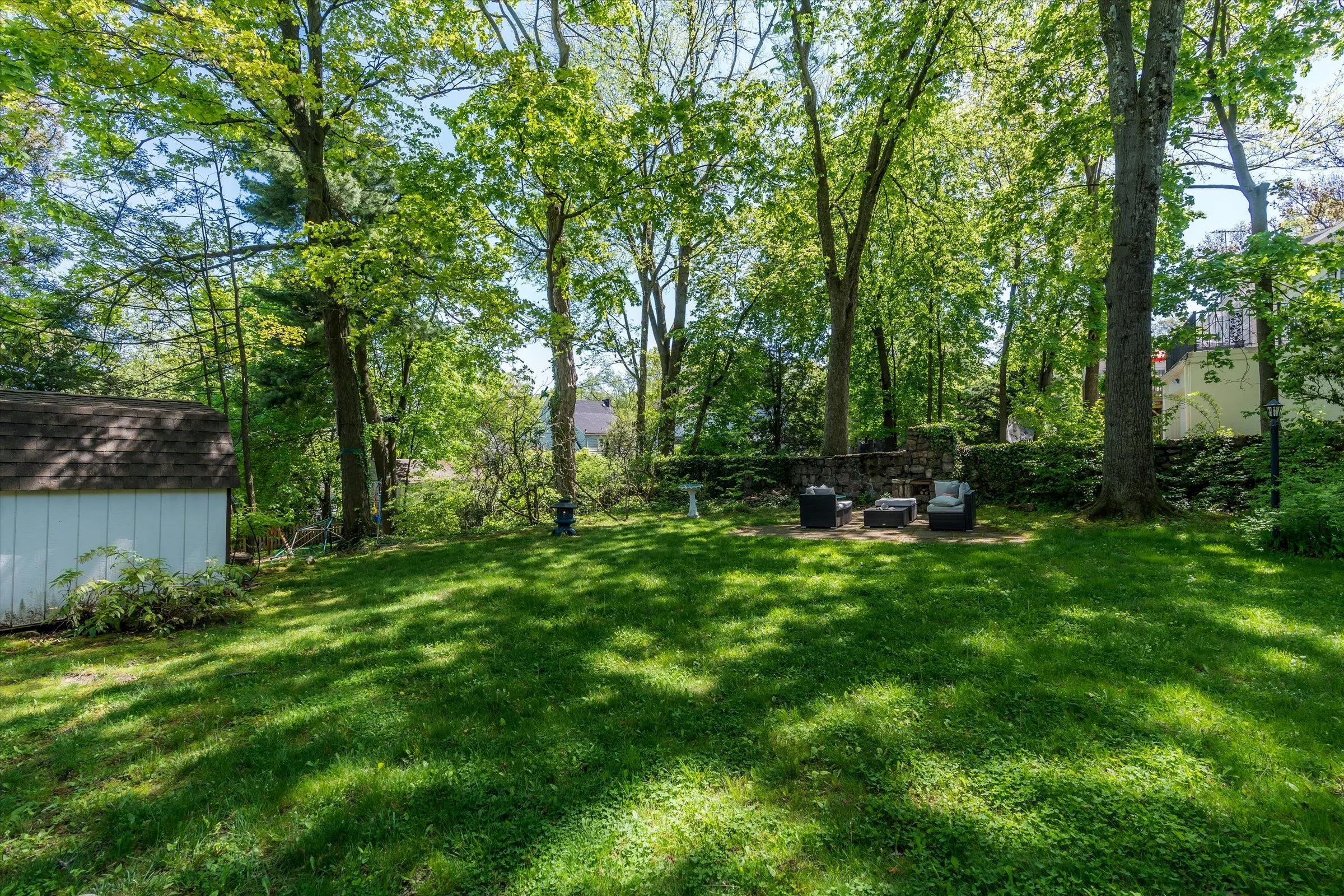 Shady backyard with well-maintained trees