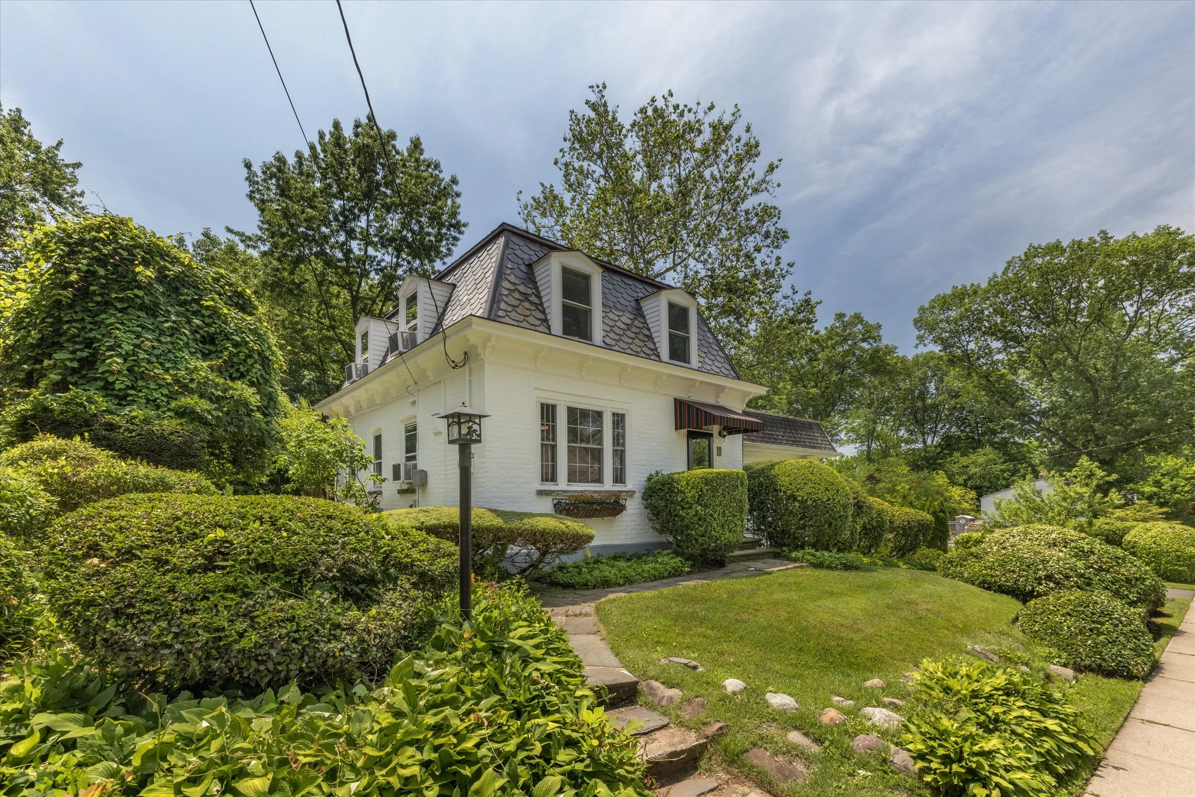 Updated open concept kitchen w/ dining area, walk-in pantry, convenient laundry & built-in office is just where this truly unique house starts. The family room is surrounded by windows & opens to the magnificent outdoor space that features a custom patio, charming pergola & access to the brook that runs through town. The living spaces in this home are updated w/ a nod towards its history while maintaining a modern aesthetic. Large LR w/ wood-burning fireplace, custom built-ins, large primary bedroom w/ newly renovated full bath. The three other bedrooms are charming. Just minutes from schools, town and train.
