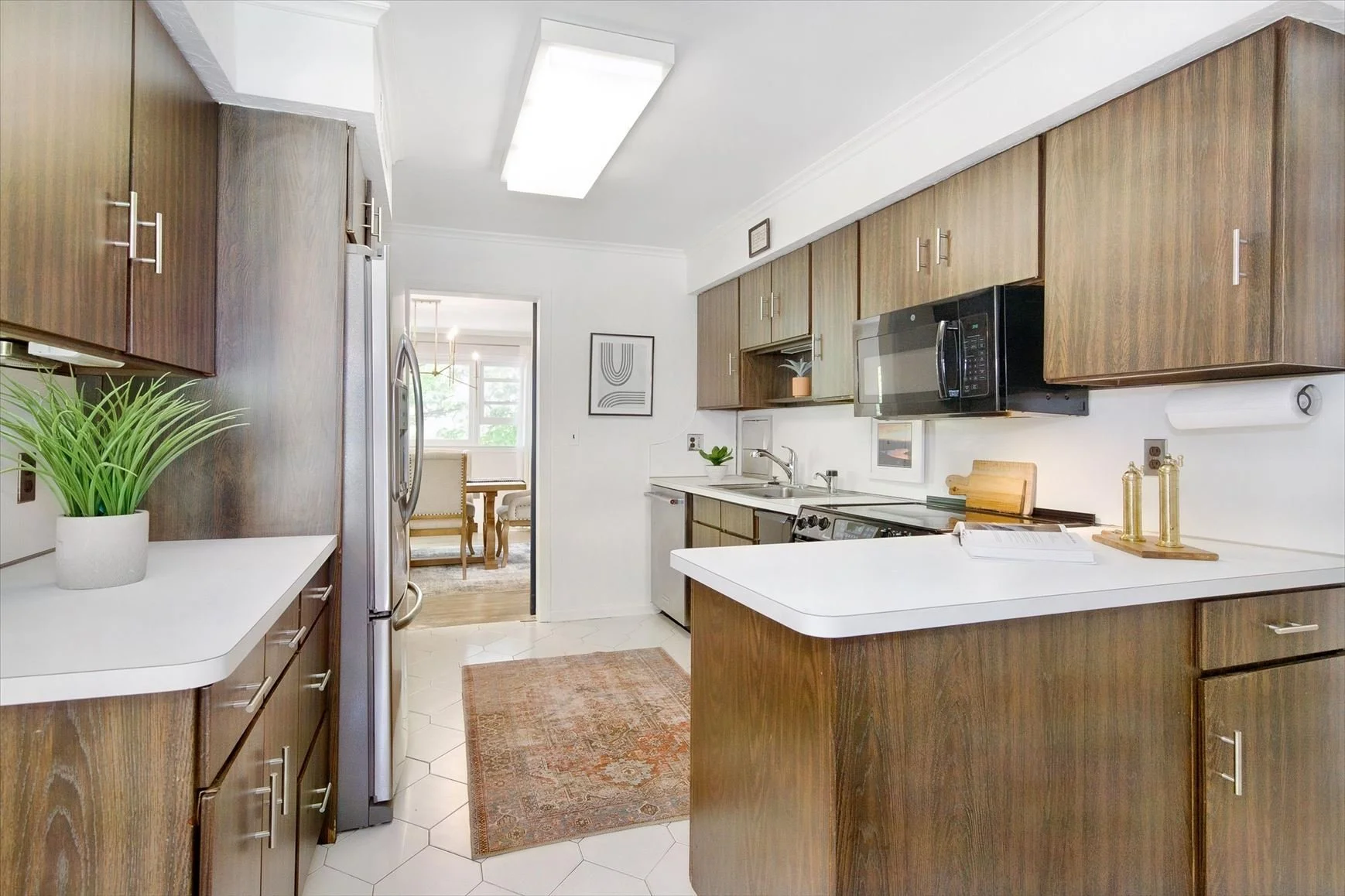while the bluejays, robins, and cardinals watch them as well. Custom outdoor living spaces which include a massive front yard/garden fenced in a picket fence where kids can play, top floor patio for outdoor yoga amongst the trees and coffee in the morning, and the backyard with swing set, patio, and modern concreter pavers to entertain. The brown suede TV room that was designed in collaboration with a European designer that was flown in to design this room specifically with the original owners (The original owner was a interior designer who built all of the beautiful built in cabinets). Love the Chinese hand carved screens that were fashioned into doors for the massive storage in the "brown room." There is also a beautiful skylight with high vaulted ceilings and incredible floors. Oh and it has a marble fireplace mantle over the gas fireplace. The Bathrooms. The powder room designed by previous owners. It has such character and is absolutely a conversation piece amongst guests. The Master bathroom is small but a lot of thought went into the design to maximize the space. It has marble terrazzo tile with snowy white glass picket tile that makes you feel like you are in a jewel box. All fixtures are brushed brass Kohler. And there is a bench in the shower. We custom built the vanity with a concrete bowl from Concreto to maximize space on top of the counter. The kids bathroom is also brand new. It has all brand new fixtures and a soaking bath from Kohler. Delicate white textured tile to open up the room. Beautiful hexagon floor tile in a denim blue with white accents. It has a laundry shoot to send clothes right down to the washing machine. Built bench in the master bathroom to accomodate keeping the laundry shoot but building more space into the shower. WinWin The custom carved built-in closets in the Master bedroom and second bedroom. Master closets are with Elfa custom closets. The formal living room with the huge windows that overlook the backyard and NYC and wood-burning fireplace. There is custom woodwork in this room as well. The brick/stone ? fireplace is multicolored and really picks up a lot of tone that are easy to design and match to. Love that this house is not an open floor plan but feels open. There is an eat-in kitchen attached to the kitchen and a great dining room that easily leads to the kitchen with a custom barn door.