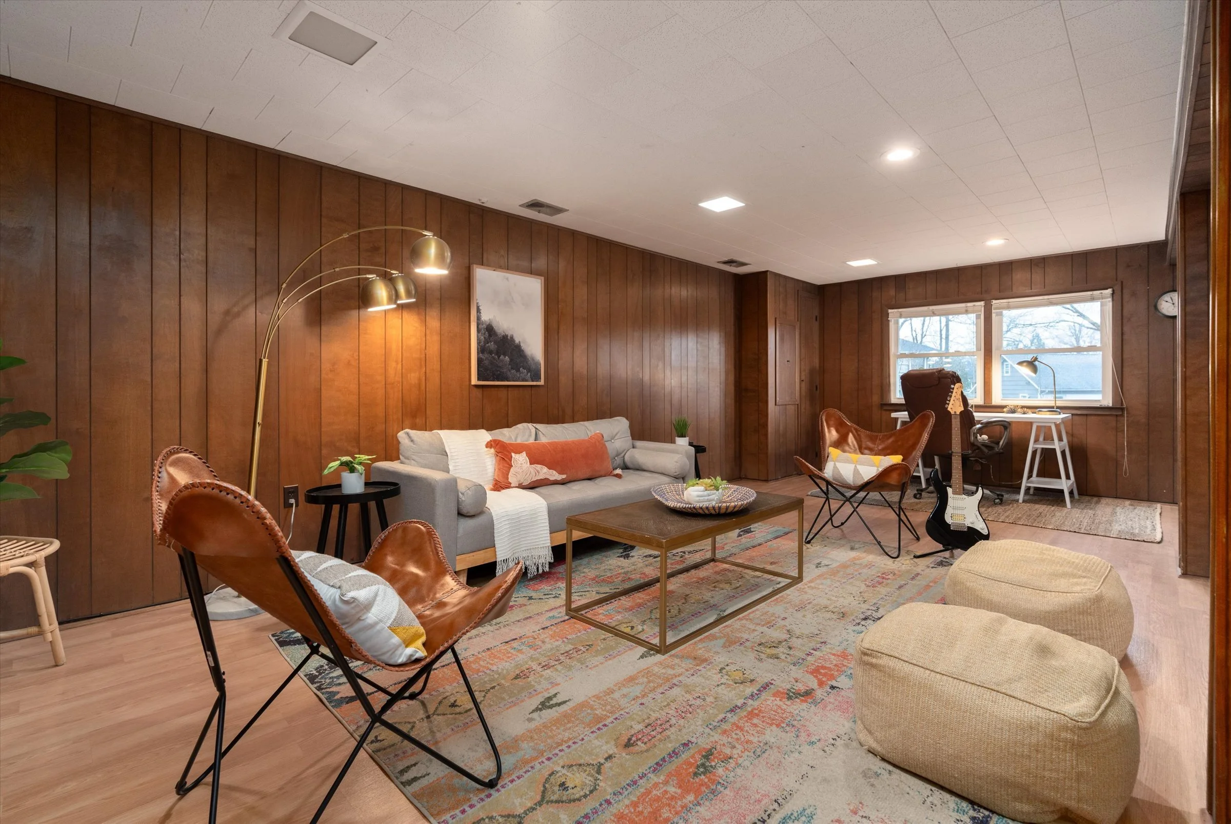 “The family room is an ideal place for working, relaxing, watching TV, and observing birds through the window.”