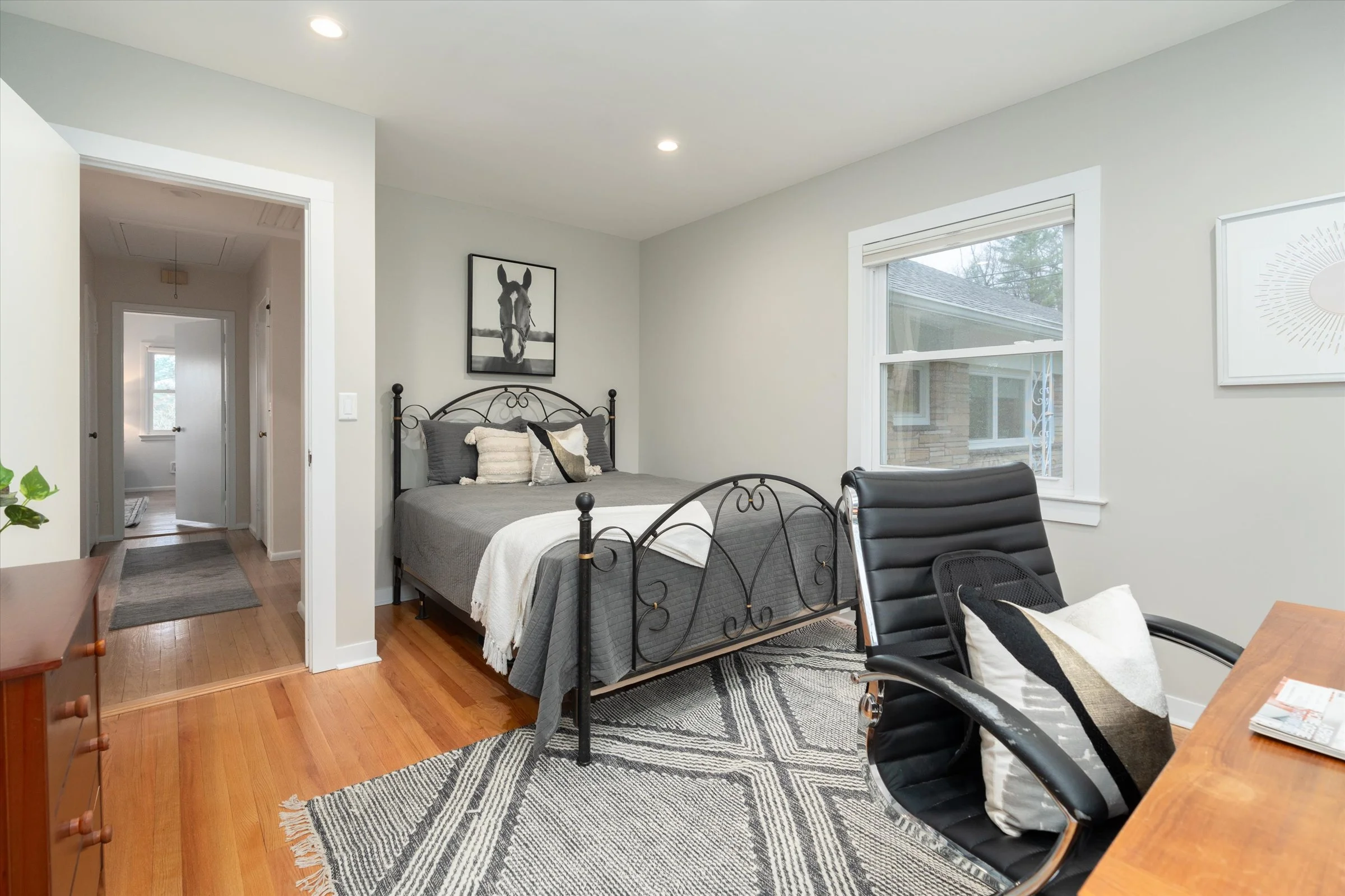 “The primary bedroom features roomy, well-designed closets and enough space for a king-sized bed.”