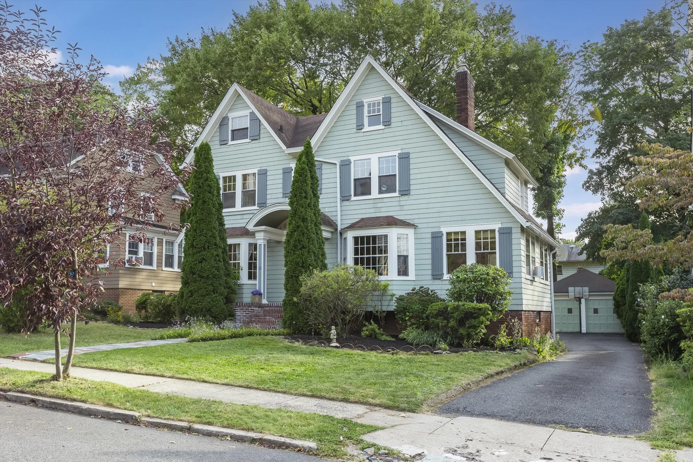 Nothing says LOCATION like this amazing home!  Only moments from Maplewood Village, Middle School, Library and Memorial Park, and across the street from the charming Tuscan Elementary School, you hardly even need a car! This classic and charming 5-bedroom, 3.1 bath Center Hall Colonial has delightful curb appeal with its twin peaks roof and gleaming windows. Inside, the spacious first floor provides room to spread out with a deep Living Room, WFH space, formal Dining Room, eat-in kitchen, fabulous enclosed back porch for easy entertaining or just relaxed living, and a first-floor bedroom near a full bathroom (ideal for guests).  Upstairs, the expansive primary bedroom, once two separate rooms, offers so much light and space with great closets, as well as an ensuite bath. A total of 5 Bedrooms, as well as a third-floor recreation area, there is a place for everyone, and even a finished lower level with a wet bar to add to the fun. Outside you find a large backyard perfect for gardening and private outdoor time, plus the detached garage, but you just might find yourself crossing the street in order to play on the playground after school hours, or kick a ball on the huge fields. Fresthly painted and lovingly maintained for many years, it’s now time for its next lucky owners!