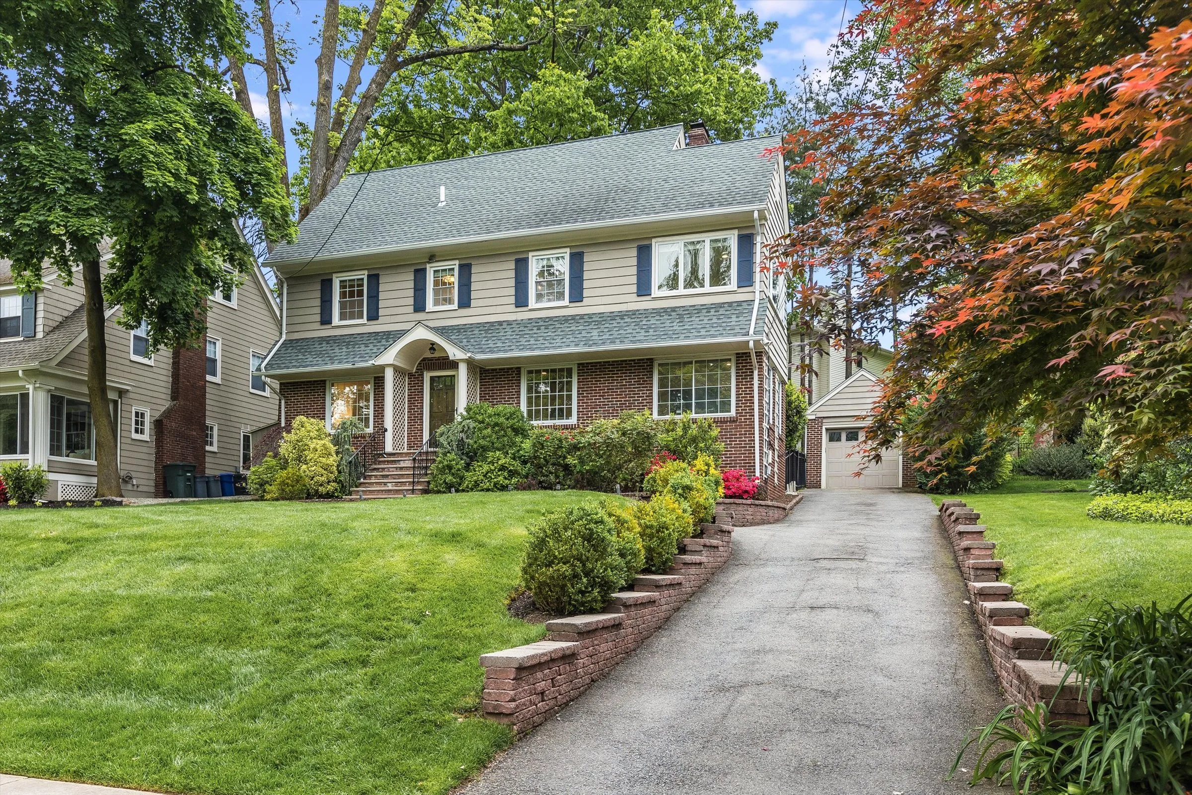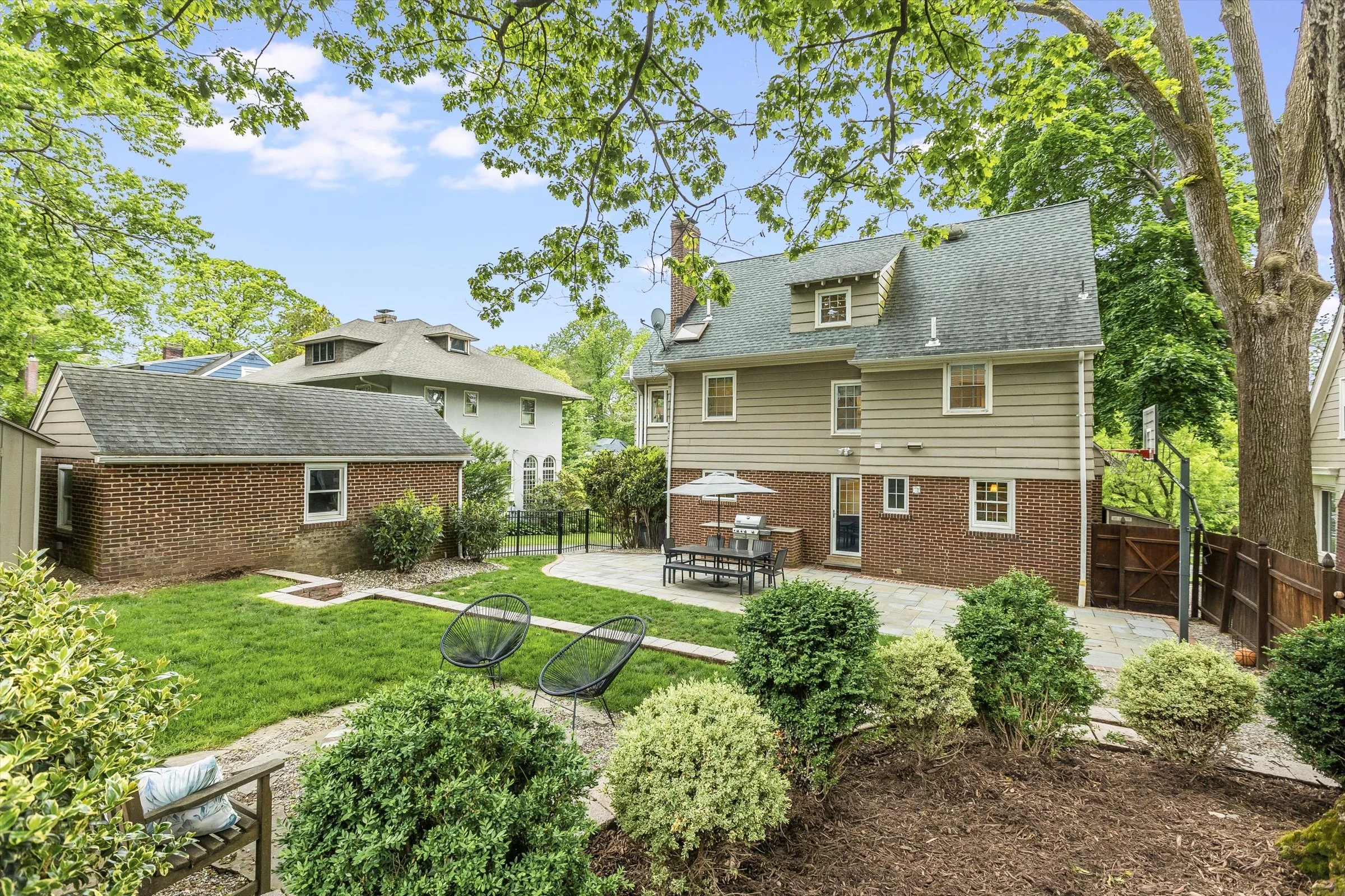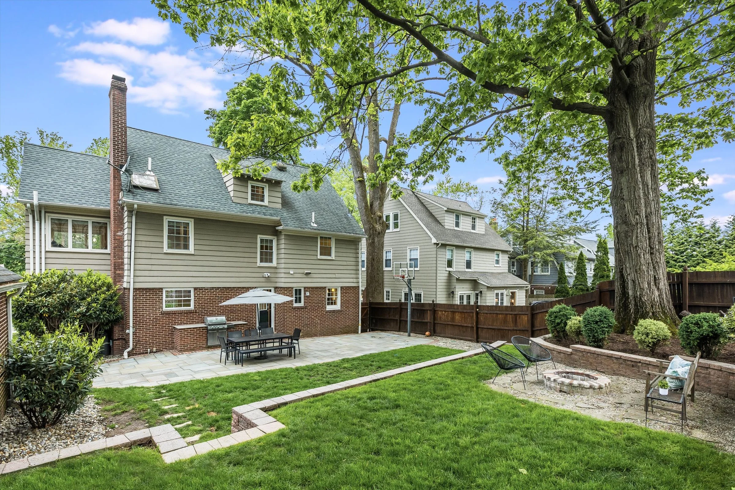 Discover the epitome of Maplewood charm and convenience at 32 North Terrace. This center-hall Colonial home seamlessly blends timeless architecture with modern amenities, a beautifully landscaped outdoor space that is perfect for entertaining, and a location so close to town you’ll never have to struggle to find parking! Step inside to find a home that exudes both ease and elegance, boasting sturdy brick construction and meticulously preserved original features. Updated hardwood floors grace the interiors, complemented by two distinct Maplewood rooms, cute kitchen with stainless steel appliances, and a cozy and fun finished basement that's perfect for movie night or the big game. Live effortlessly on the first floor, where a spacious living room, sun-soaked Maplewood room, and refined dining area with original millwork await. Upstairs, on the second floor, three large and sunny bedrooms offer ample accommodation, including an oversized primary suite featuring an ensuite full bath with high ceilings and skylight. The third floor features another bright and airy bedroom and storage galore. The brilliantly terraced, fully fenced-in backyard space offers the perfect suburban oasis complete with built in fire pit and chef style grill enclosure. Embrace the abundance of 32 North Terrace, where luxury, space, and location converge to offer the ultimate Maplewood lifestyle.