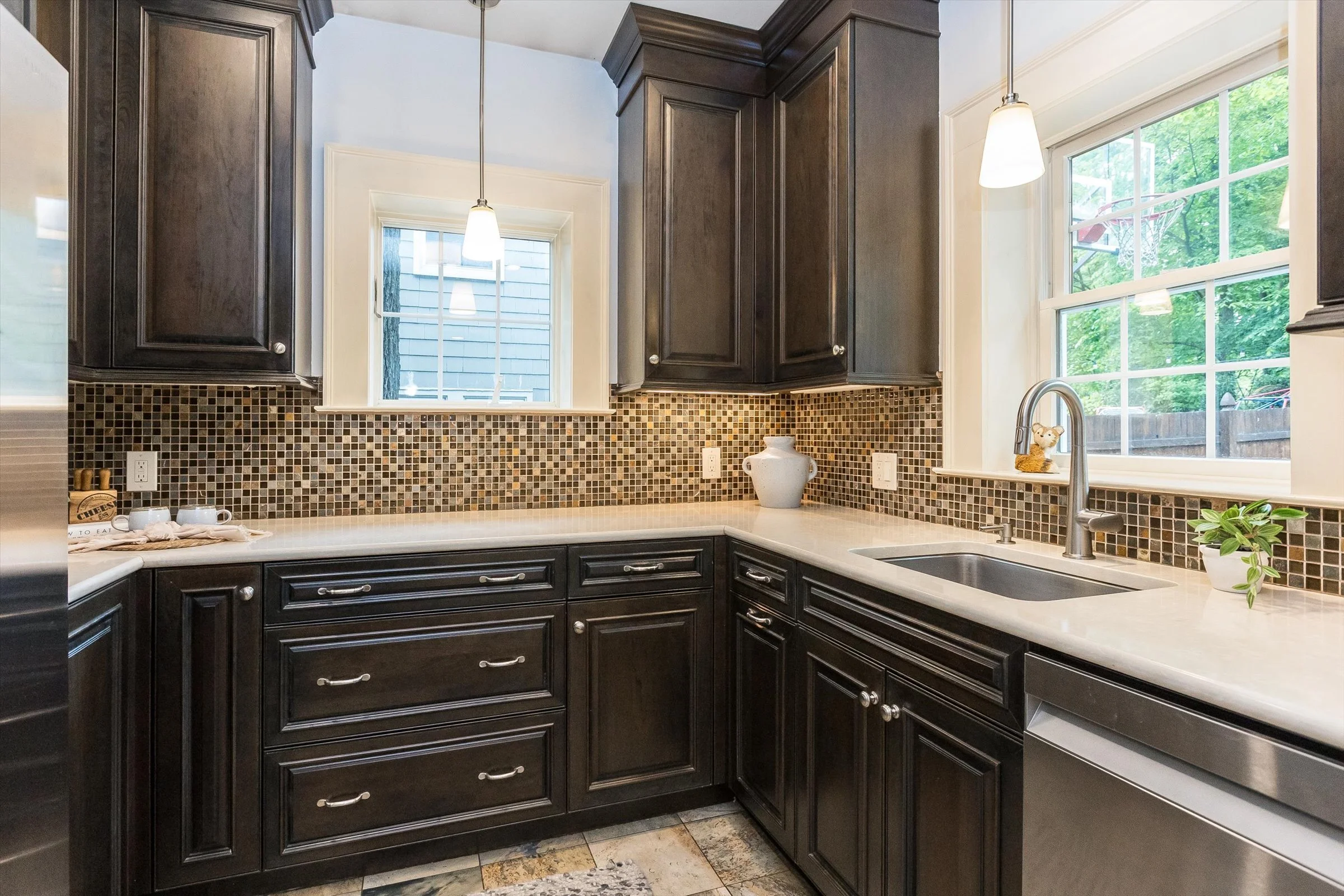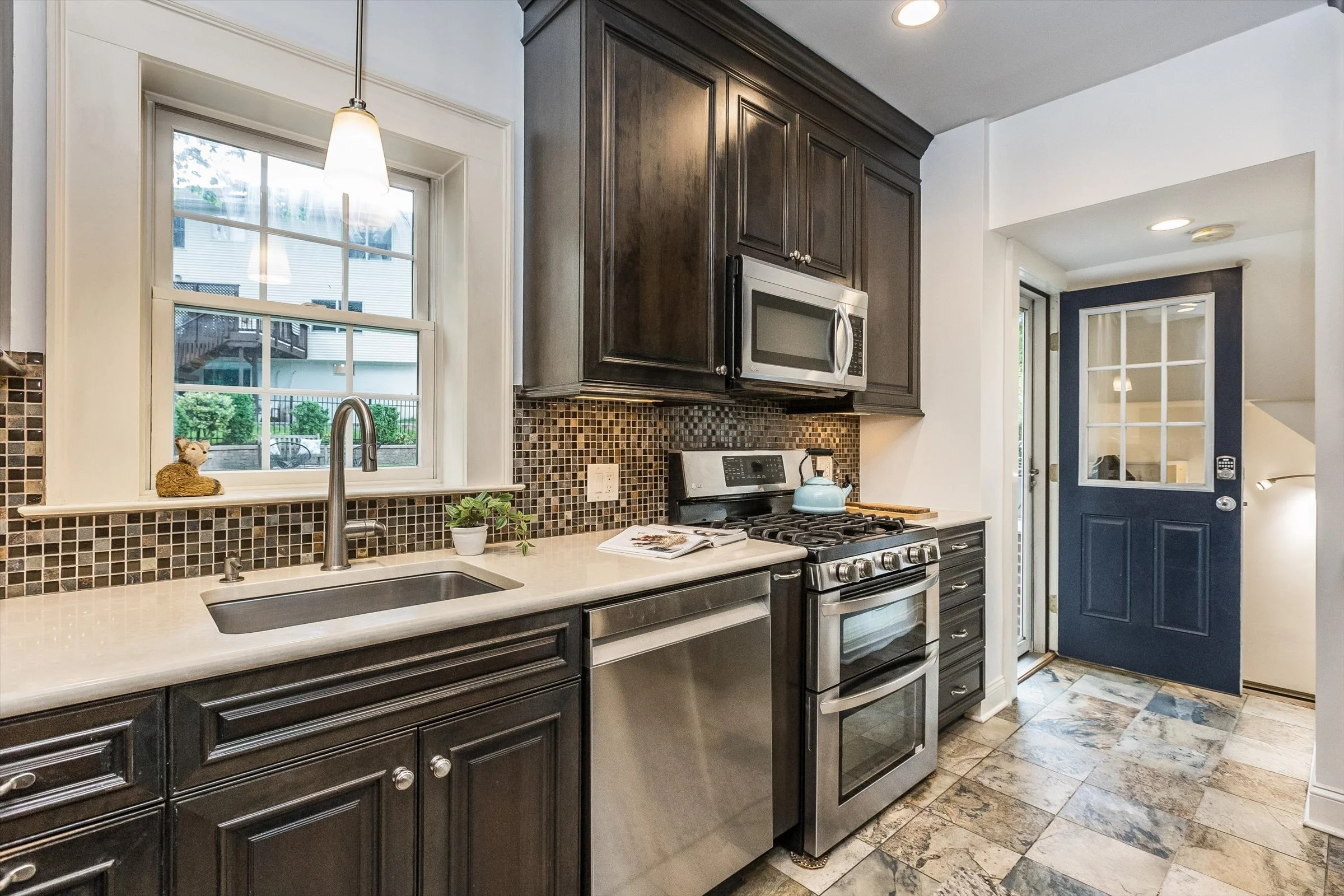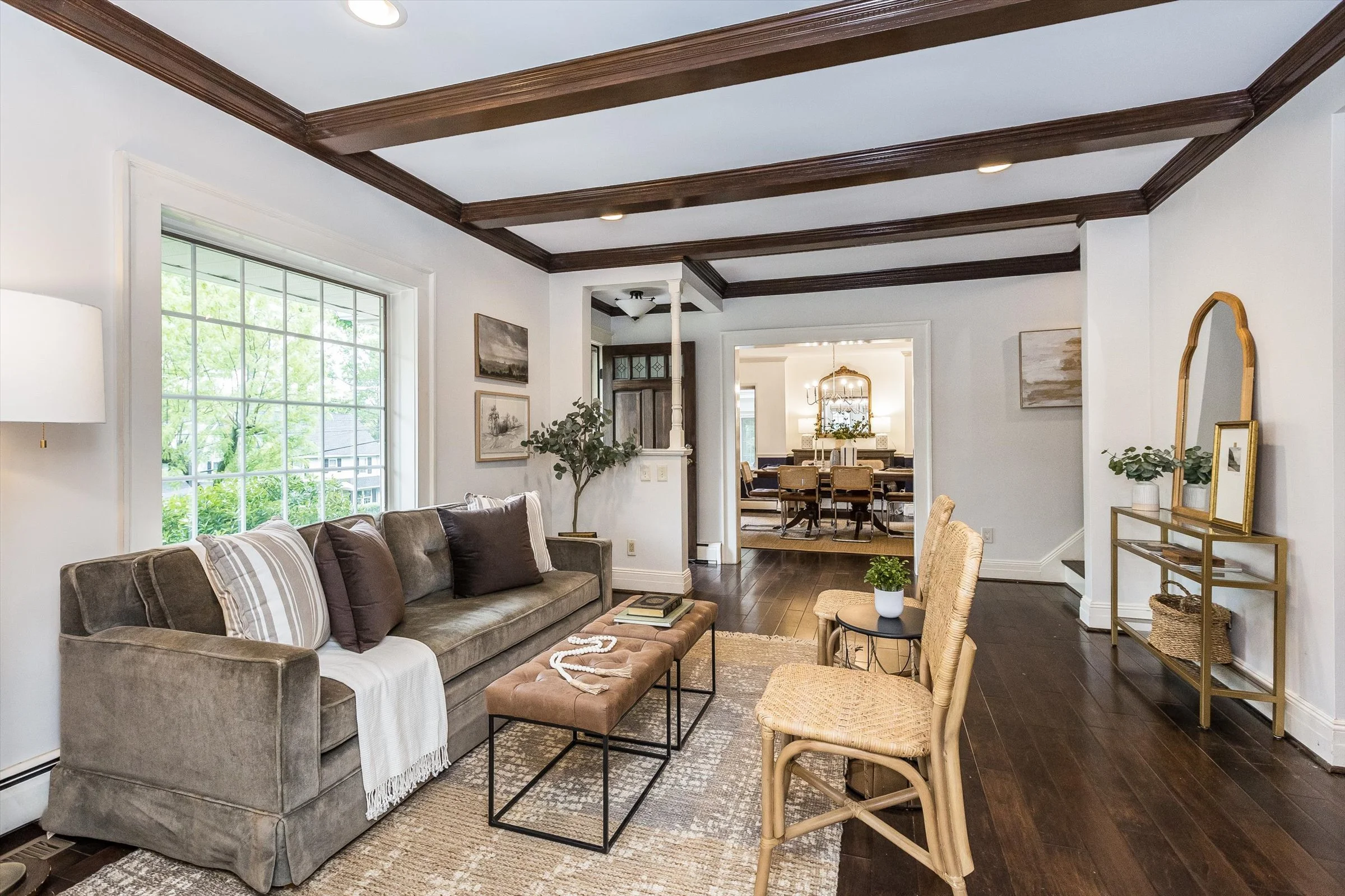 Discover the epitome of Maplewood charm and convenience at 32 North Terrace. This center-hall Colonial home seamlessly blends timeless architecture with modern amenities, a beautifully landscaped outdoor space that is perfect for entertaining, and a location so close to town you’ll never have to struggle to find parking! Step inside to find a home that exudes both ease and elegance, boasting sturdy brick construction and meticulously preserved original features. Updated hardwood floors grace the interiors, complemented by two distinct Maplewood rooms, cute kitchen with stainless steel appliances, and a cozy and fun finished basement that's perfect for movie night or the big game. Live effortlessly on the first floor, where a spacious living room, sun-soaked Maplewood room, and refined dining area with original millwork await. Upstairs, on the second floor, three large and sunny bedrooms offer ample accommodation, including an oversized primary suite featuring an ensuite full bath with high ceilings and skylight. The third floor features another bright and airy bedroom and storage galore. The brilliantly terraced, fully fenced-in backyard space offers the perfect suburban oasis complete with built in fire pit and chef style grill enclosure. Embrace the abundance of 32 North Terrace, where luxury, space, and location converge to offer the ultimate Maplewood lifestyle.
