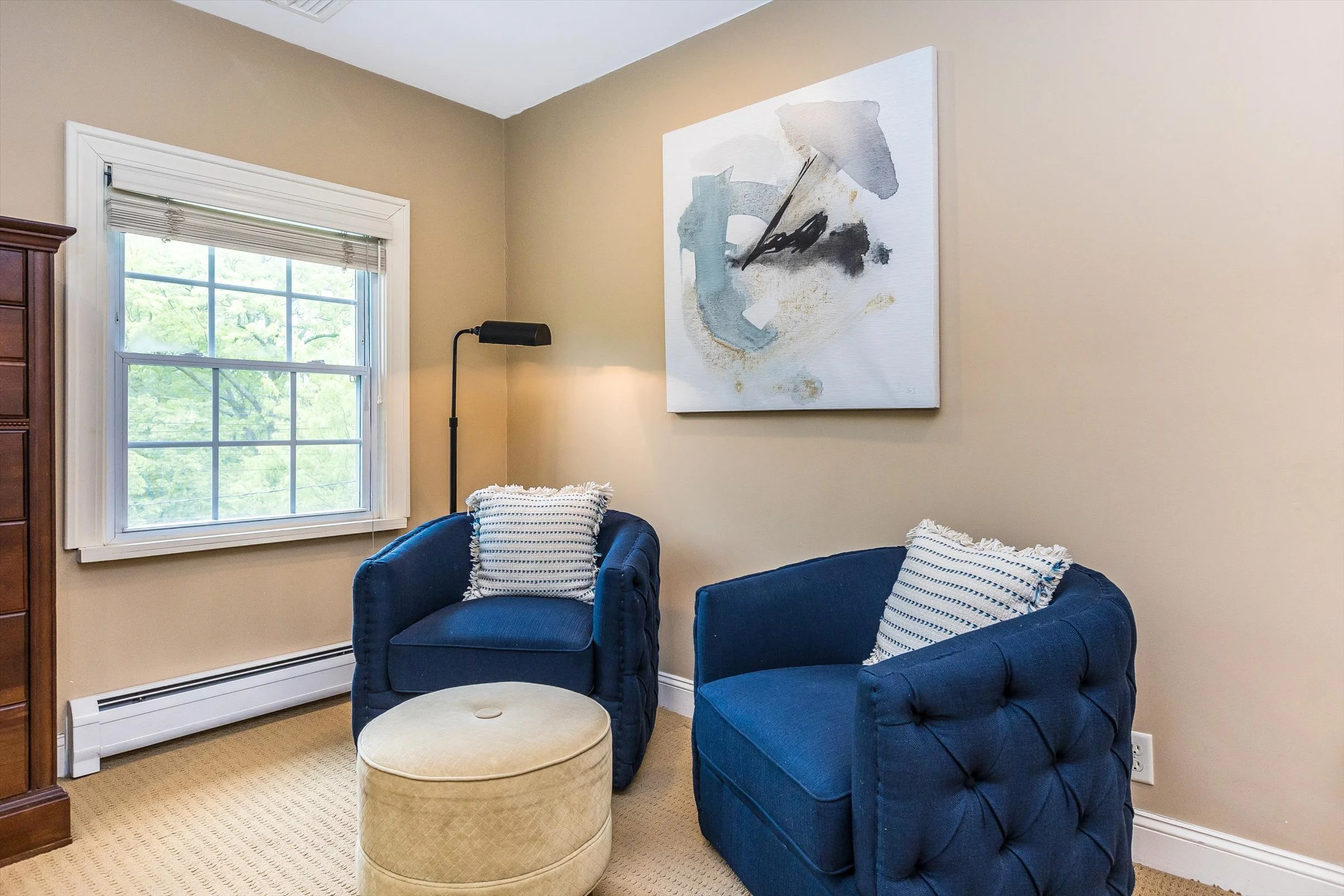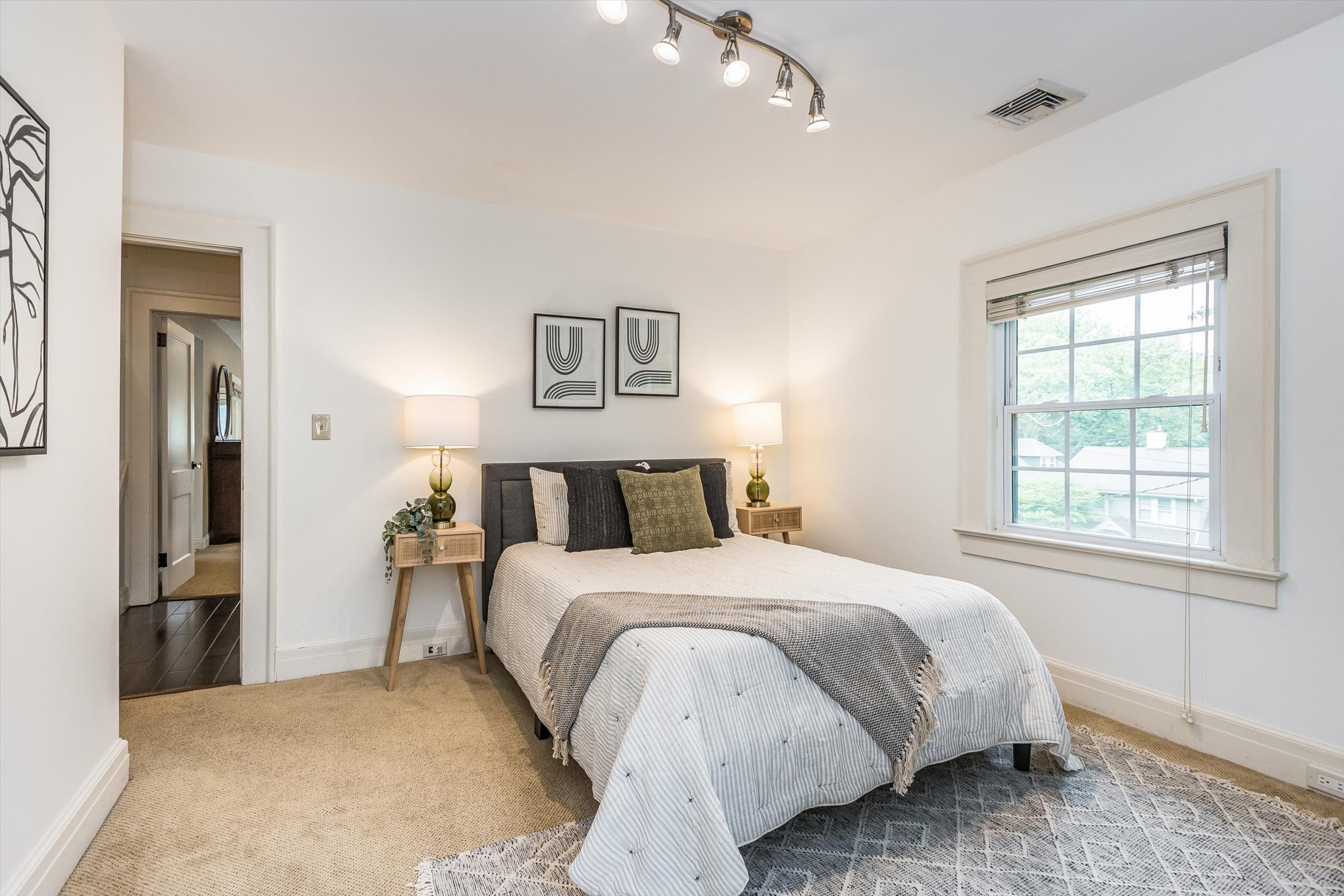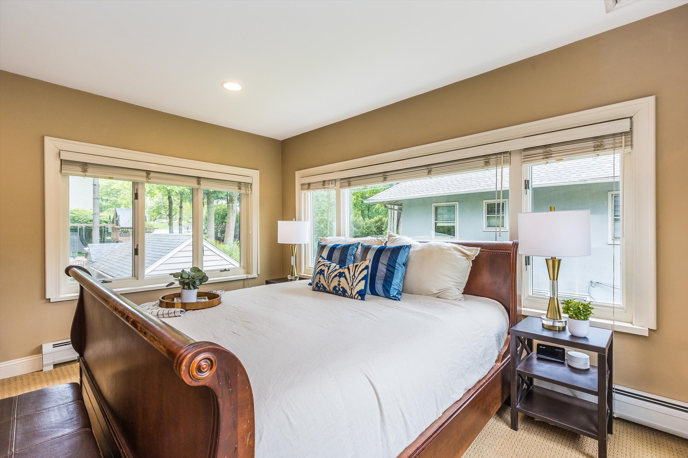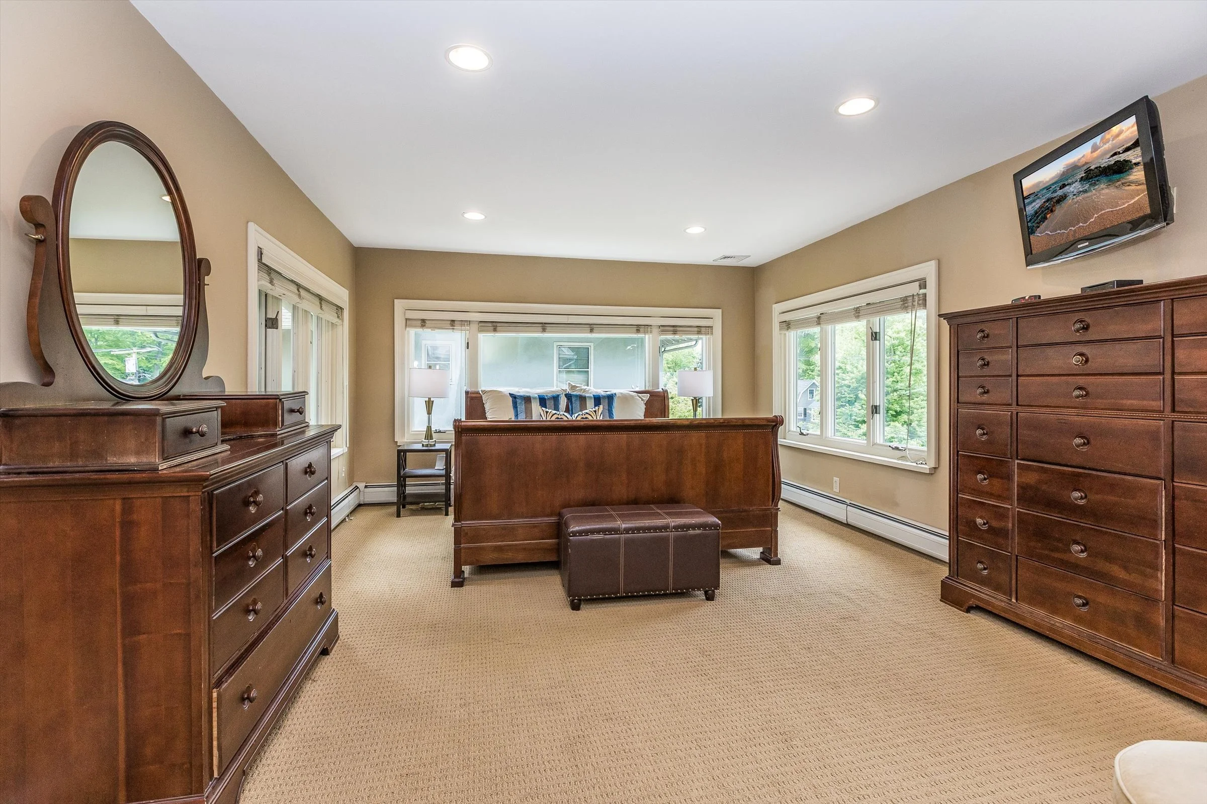 Large primary suite with space for a reading chair.