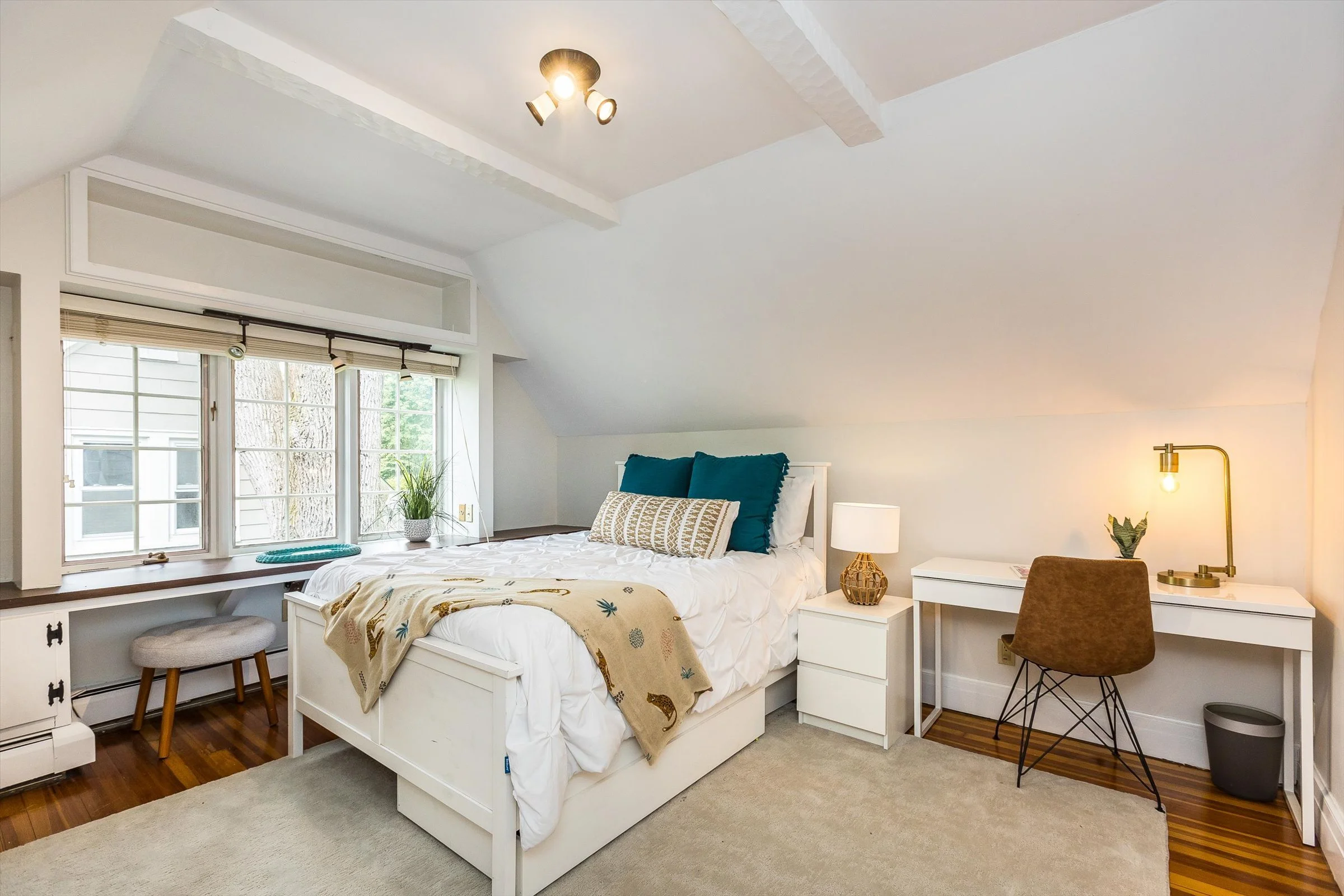 Finished third floor bedroom with room to put in its own bathroom.