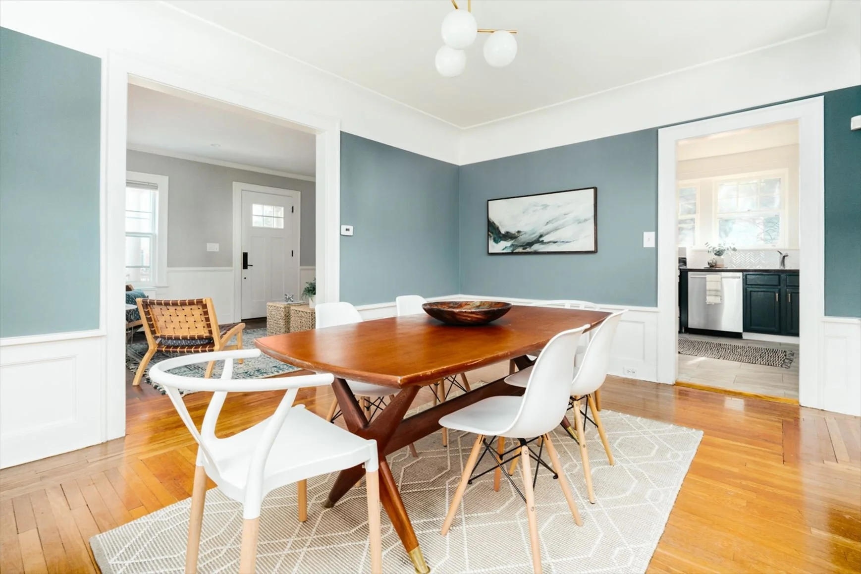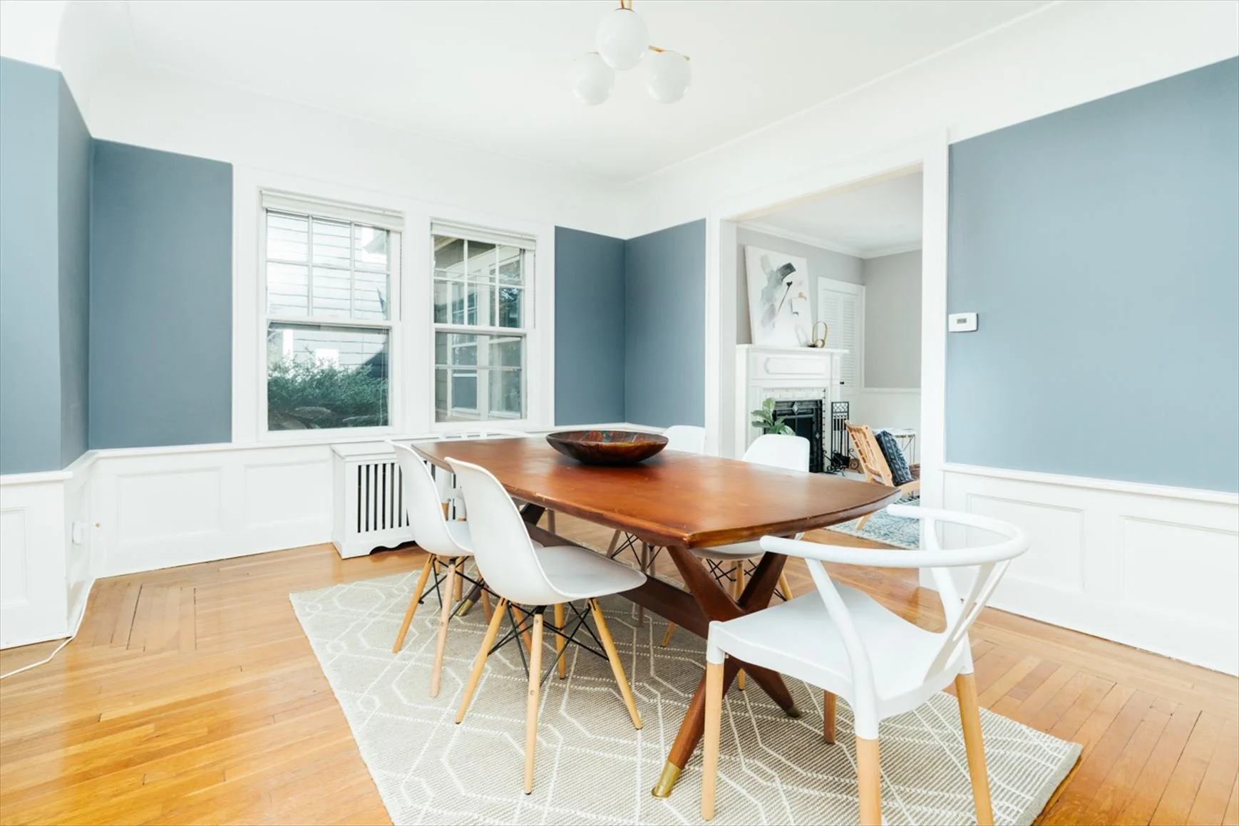 Filled with historic charm and details, this dining room begs to be the perfect location for that special holiday gathering or even just a simple weeknight family dinner. Boasting original built-in cabinets that not only add old-world charm, but also convenient and functional storage, this dining room marries modern function with classic details. The wall molding that expands the entire room offers even more coveted detail!