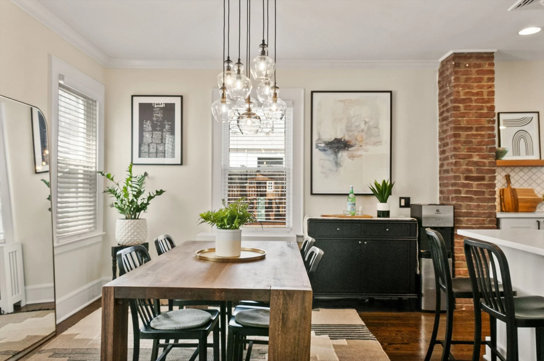 It is easy to imagine holiday gatherings and weeknight dinners in this generous space! Flowing from both the living room and the kitchen, there is an ease and openness that allows for comfortable living and entertaining. Whether it's celebrating a holiday or simply enjoying the company of loved ones, this living room offers space for it all.