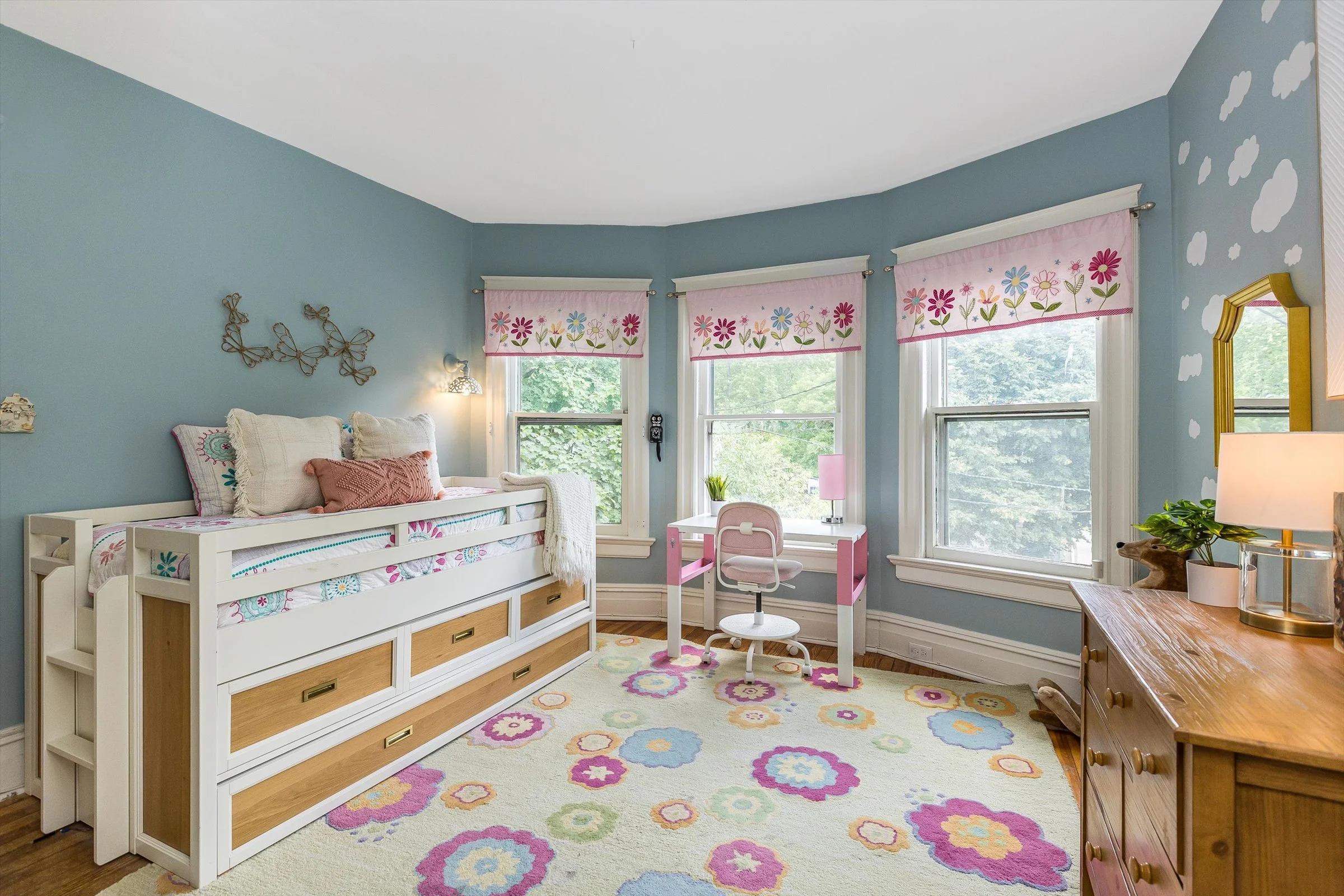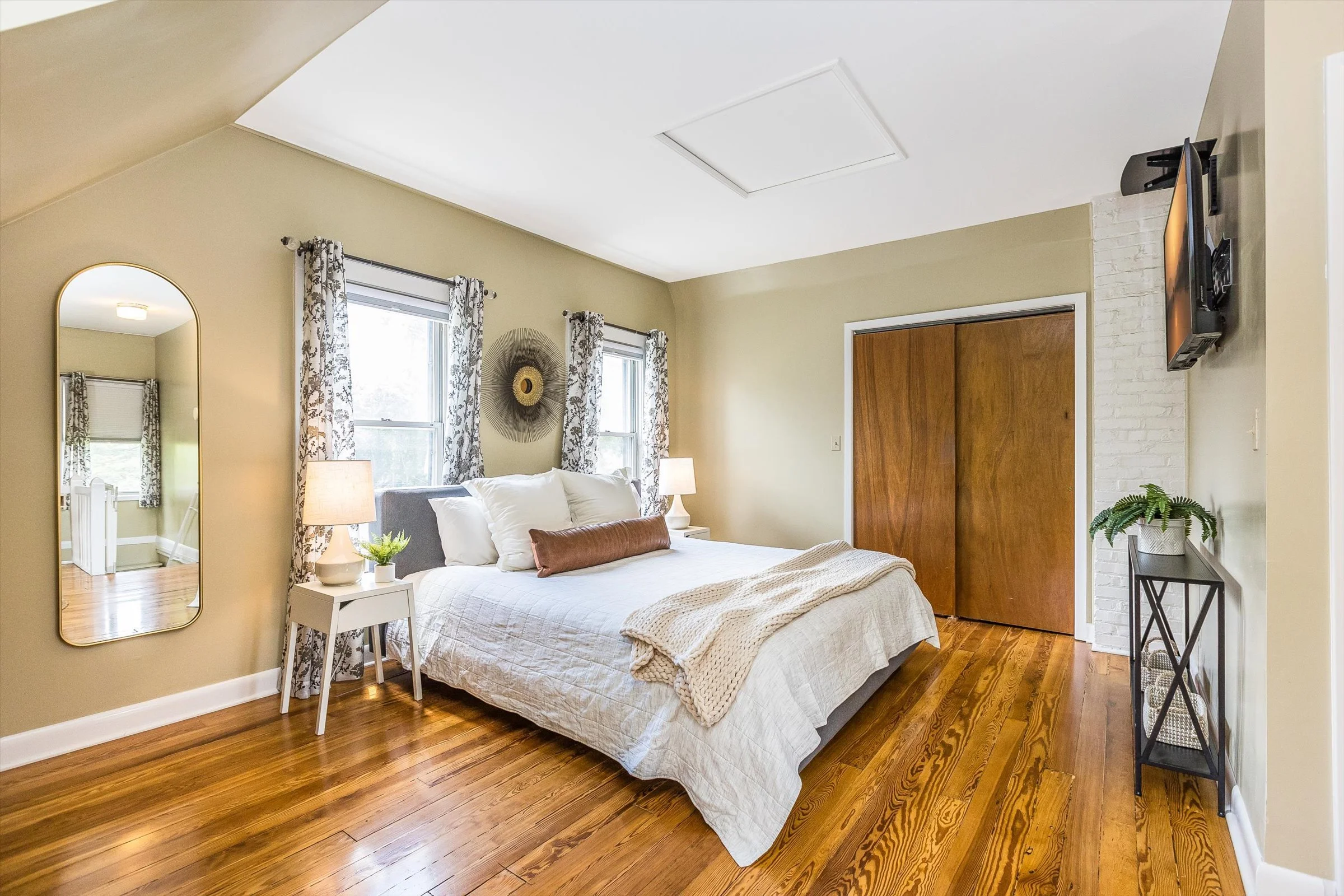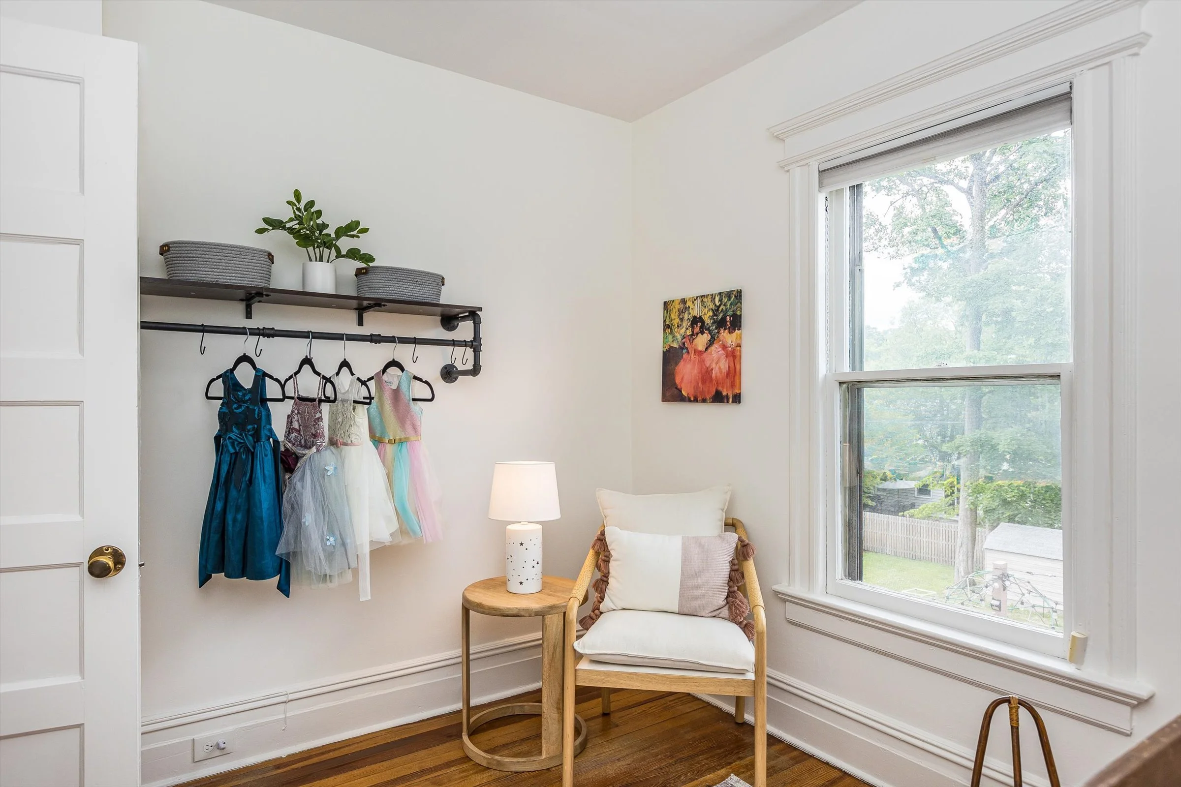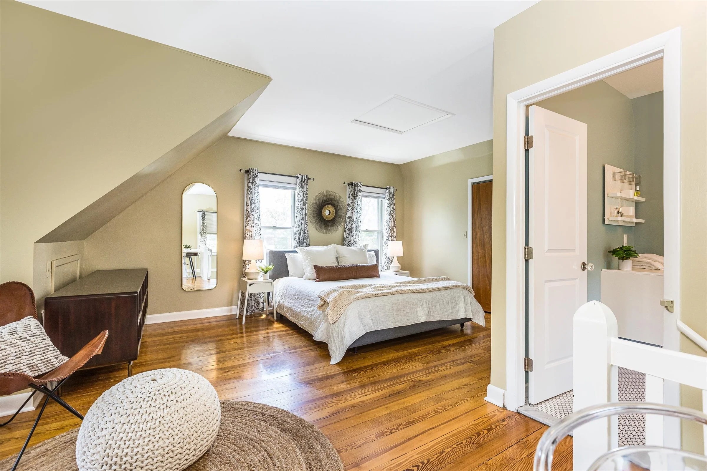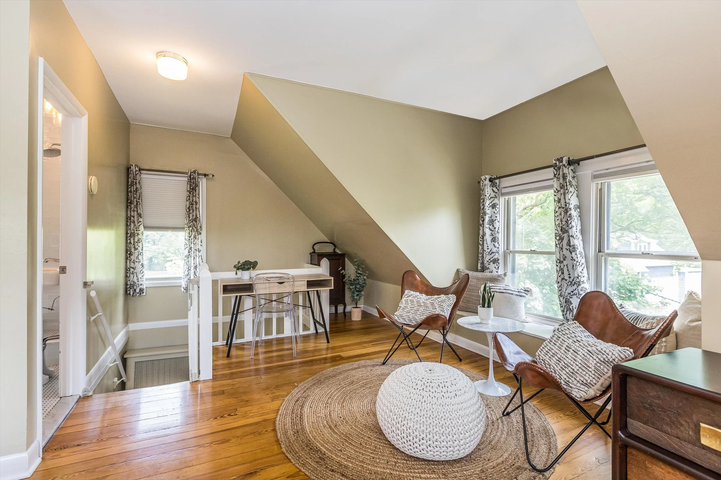 “The primary suite is truly an oasis. Incredibly generous with sitting area, large closet and ensuite bathroom. Because the house sits up on a small hill, the windows from the third floor overlook the whole neighborhood. It’s extraordinary and will be one of your favorite spots in the house.