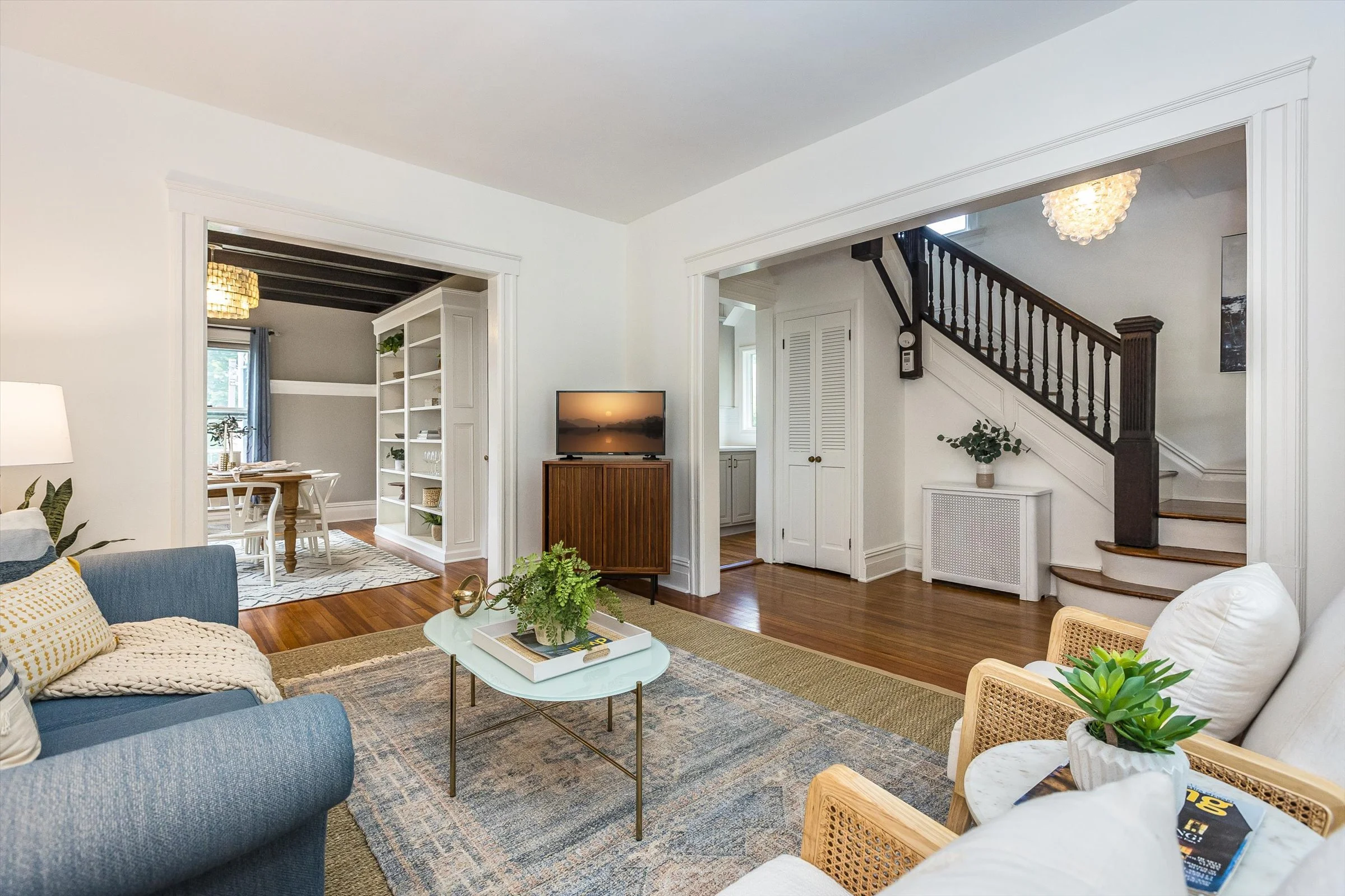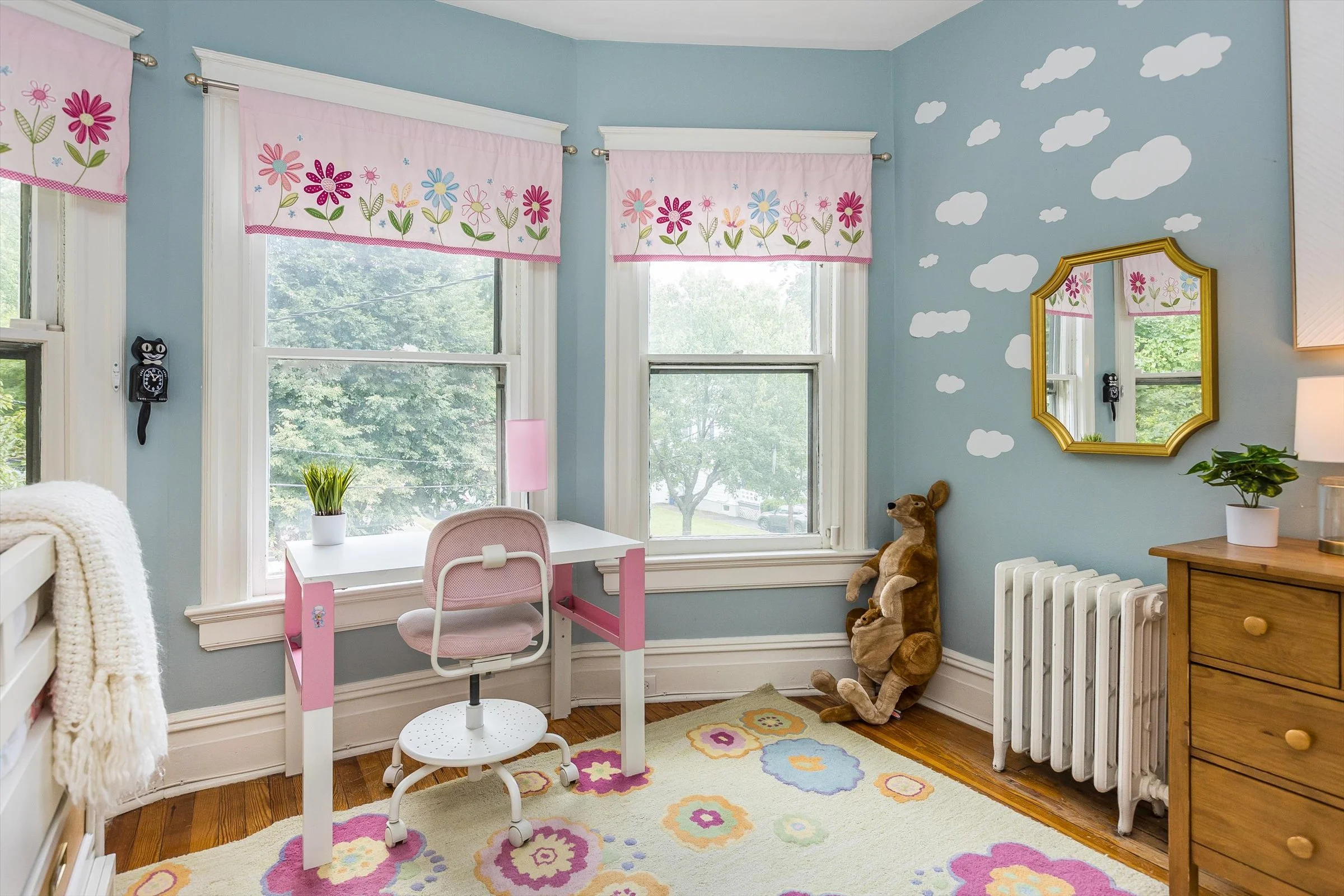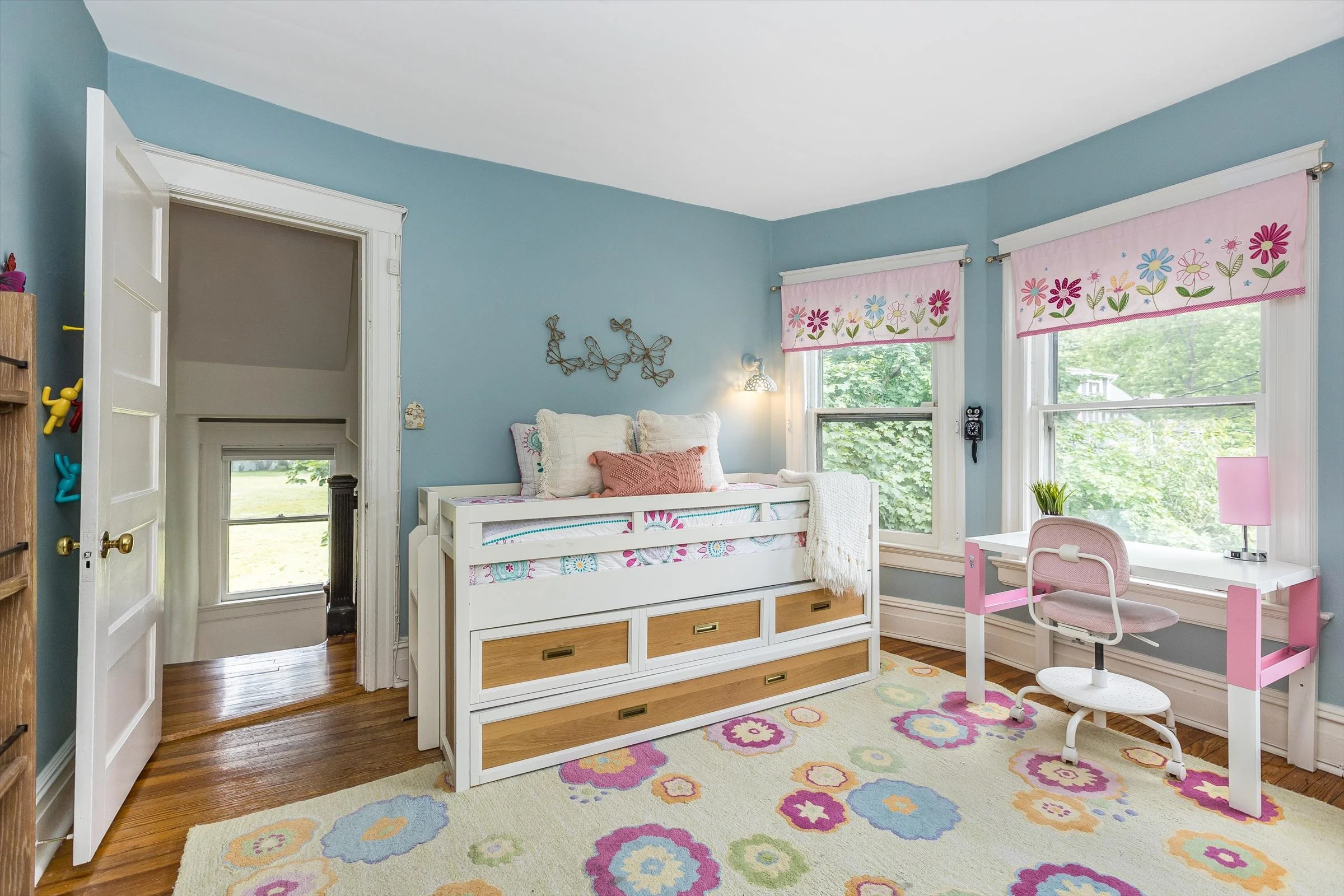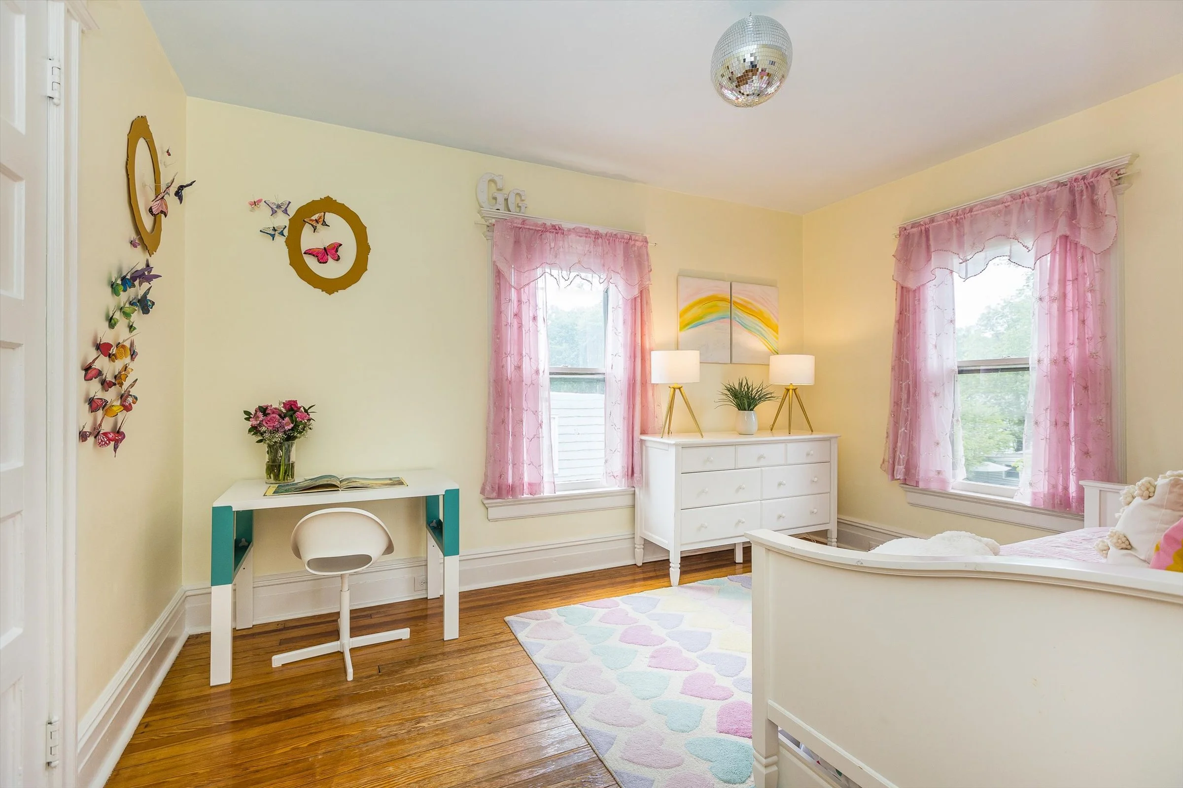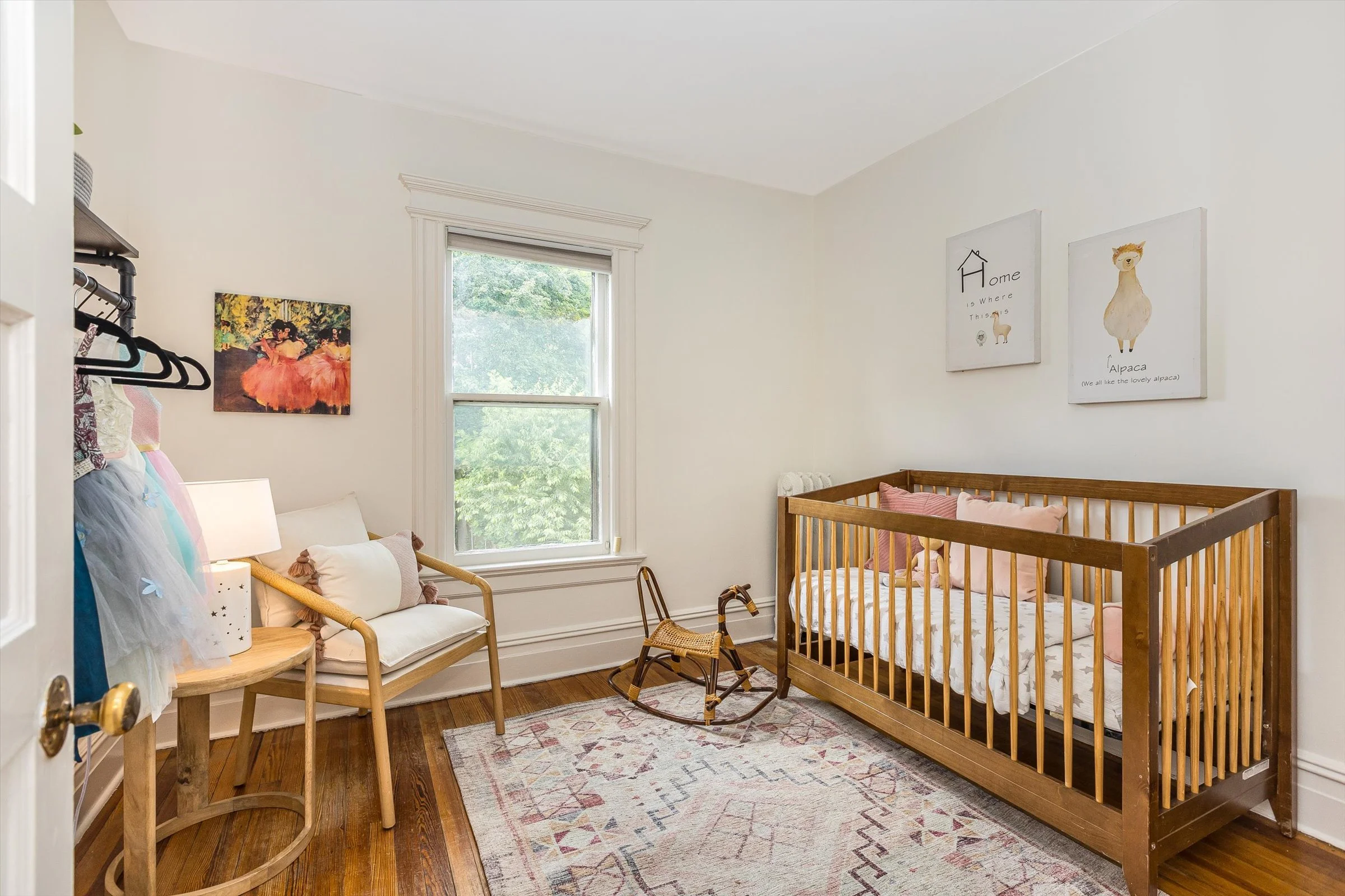“The primary suite is truly an oasis. Incredibly generous with sitting area, large closet and ensuite bathroom. Because the house sits up on a small hill, the windows from the third floor overlook the whole neighborhood. It’s extraordinary and will be one of your favorite spots in the house.