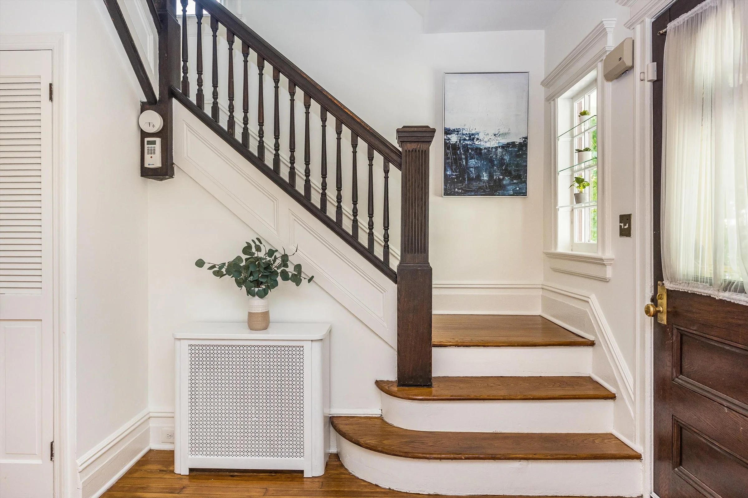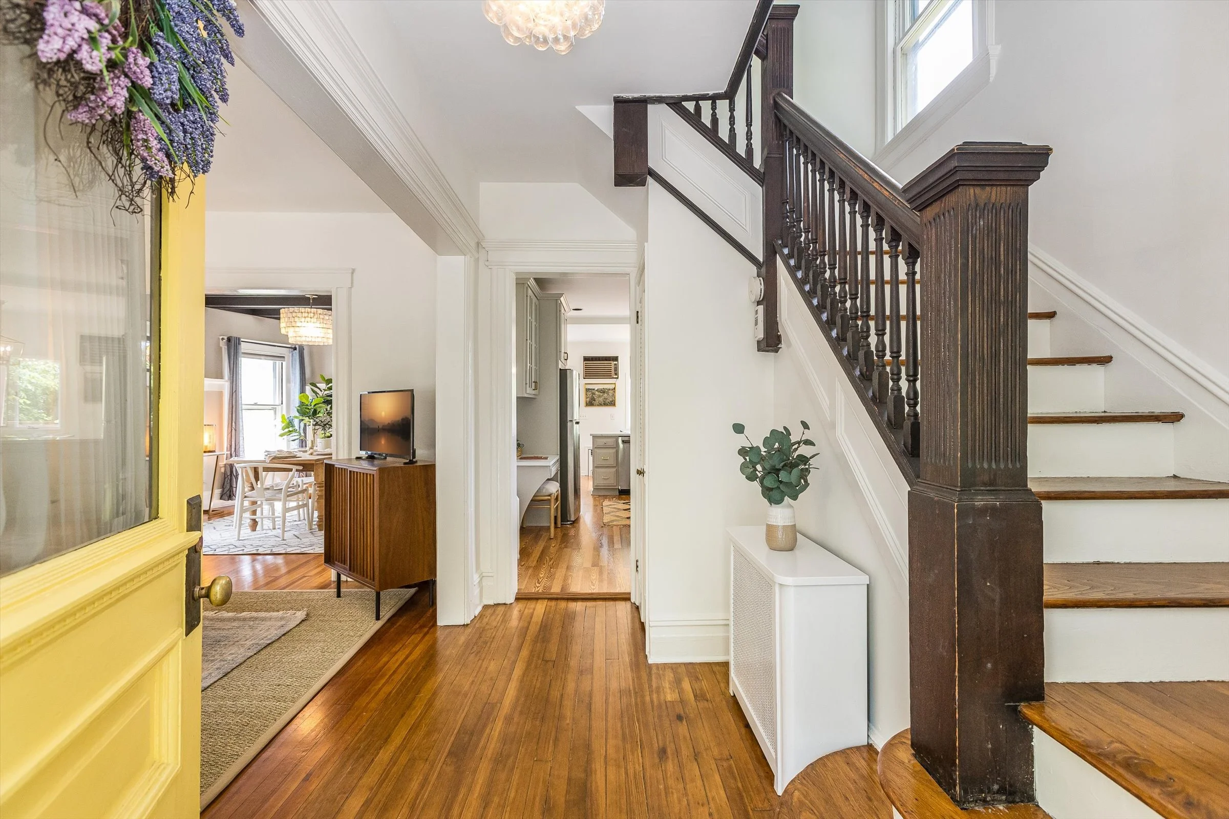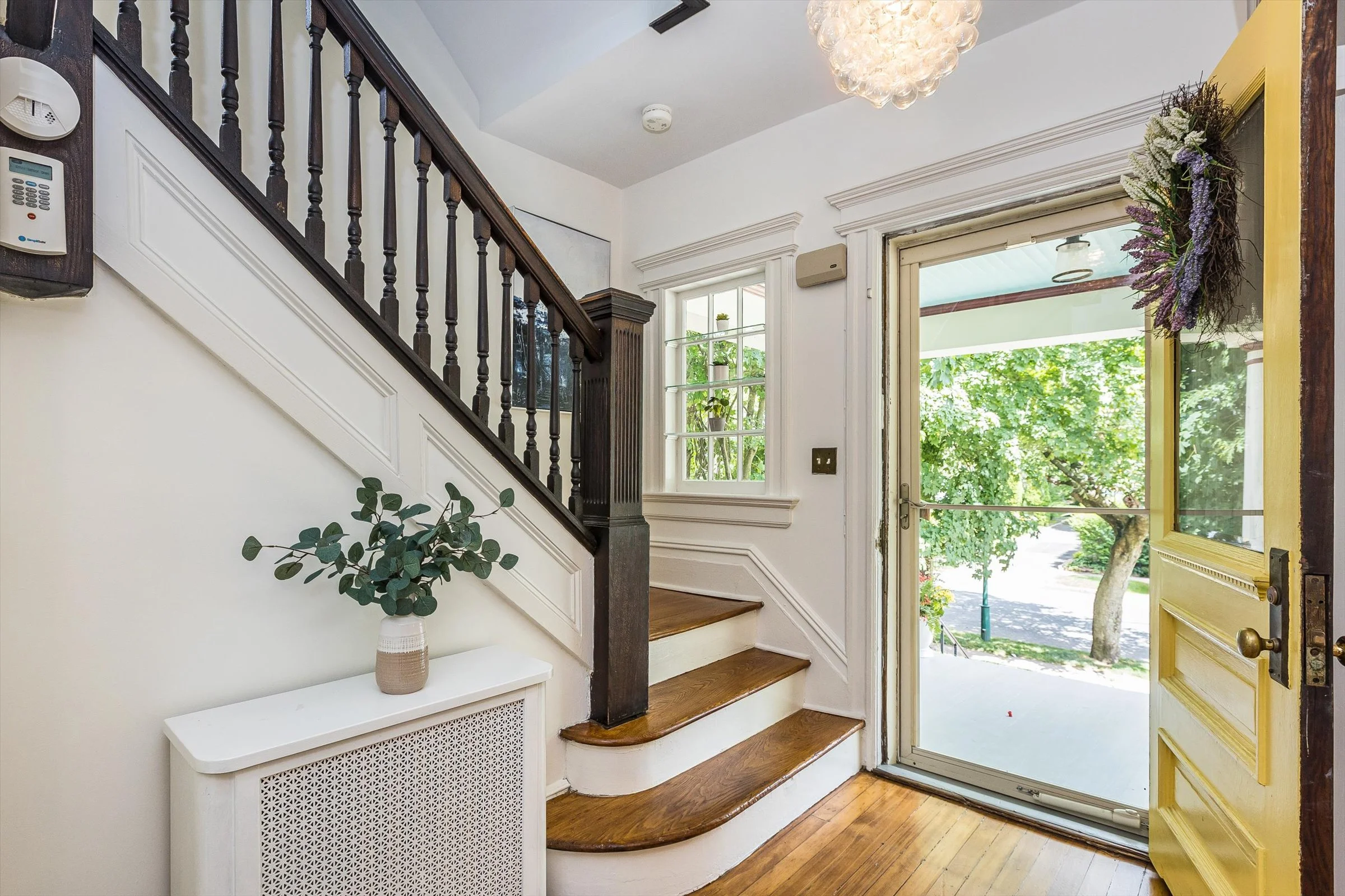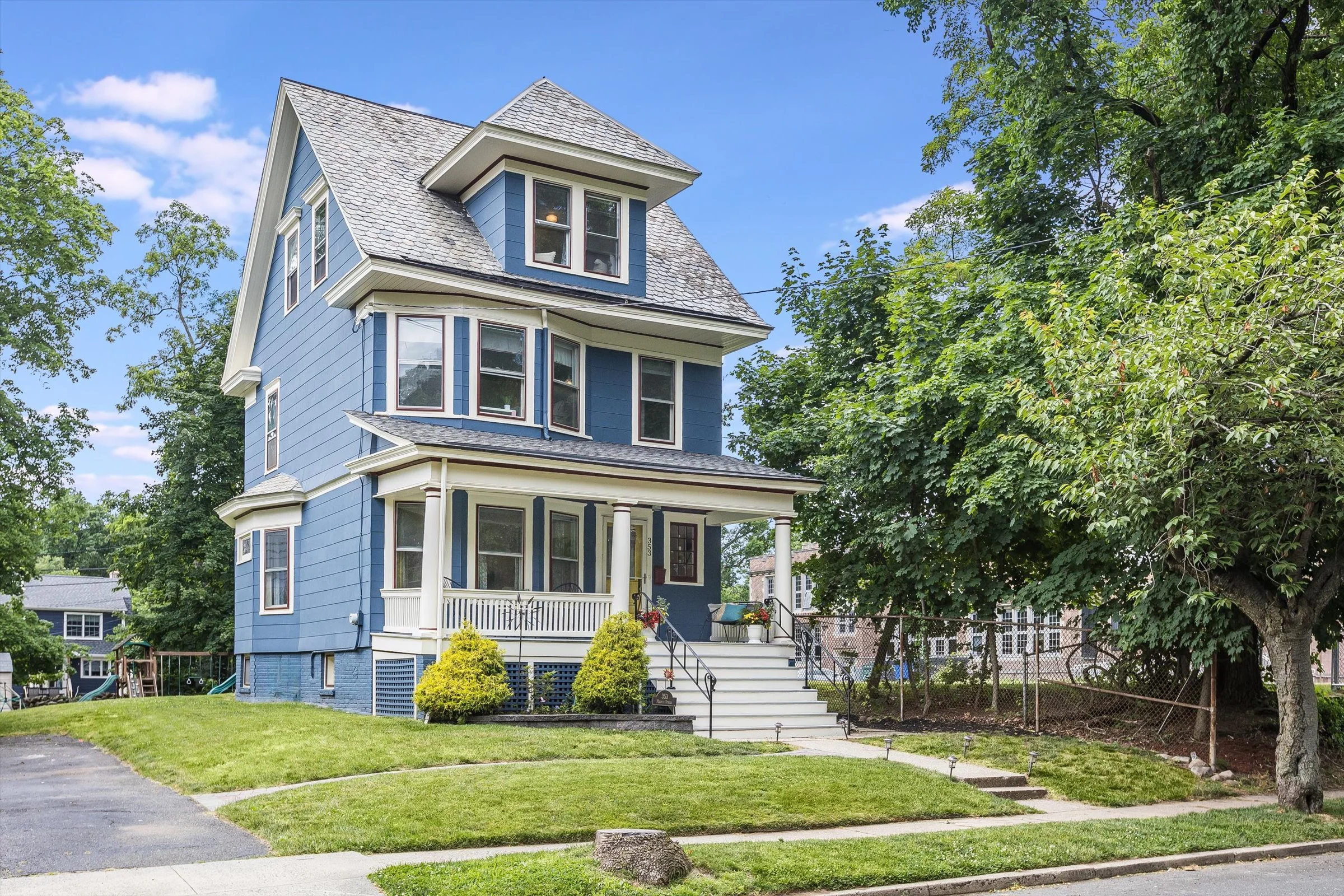 Finally a GEM that radiates with the blend of charm and spaciousness you’ve been searching for! Nestled on a beloved street, this captivating Victorian’s location is incredibly serene, and yet just blocks from 2 train stations to NYC, the vibrant downtown, and South Orange park - with playground, pools, baseball, sledding, live music and MORE- an ideal location! This special home will warm your heart the moment you lay eyes on its picturesque curb appeal! Step onto the enchanting front porch, where leisurely mornings await. Upon entering, you're captured by the soaring ceiling height, original molding, and bay windows that adorn the spacious living room. Flow seamlessly into the dining room, adorned with stained glass window, a coffered ceiling, & custom built-in shelves, this space is perfect for many years of memorable gatherings. The eat-in kitchen is a designer's dream, boasting new countertops, microwave, dishwasher, and stove. The home is complemented by original hardwood floors throughout. Upstairs, the 2nd floor features three charming bedrooms and a main bath. The 3rd floor is a SANCTUARY - a luxurious primary en suite retreat, with a generous updated bathroom and plenty of room for office space and a cozy reading nook. Step outdoors from the kitchen, you’ll find a large Trex deck overlooking a deep, lush, green yard. An oasis where hours of play await! Don’t miss this home! With its charming details and thoughtful modern updates, this gem is truly the dream come true!