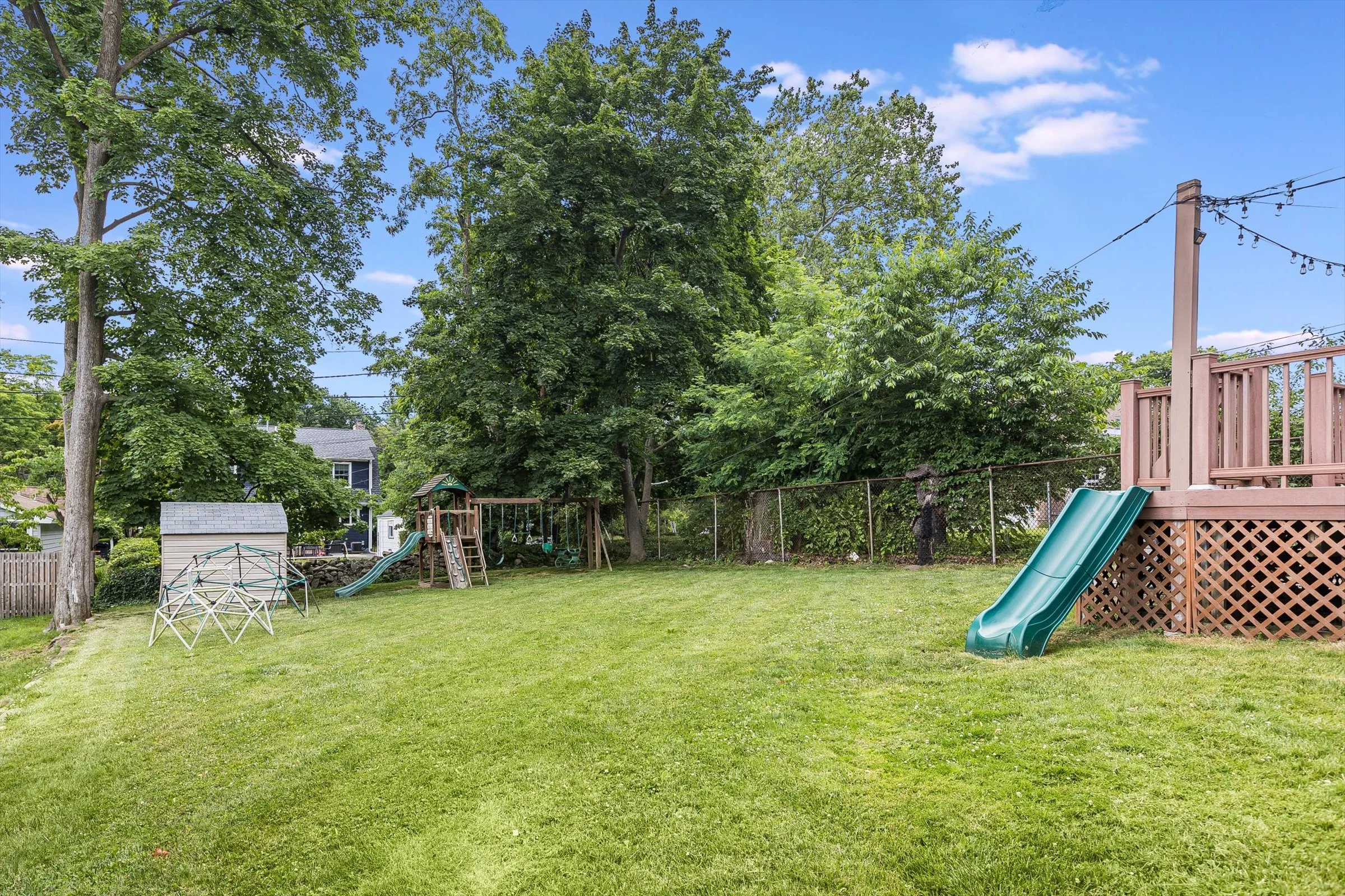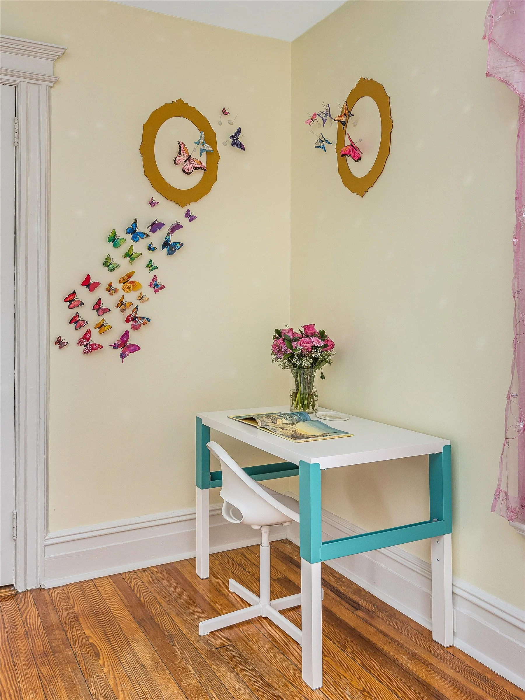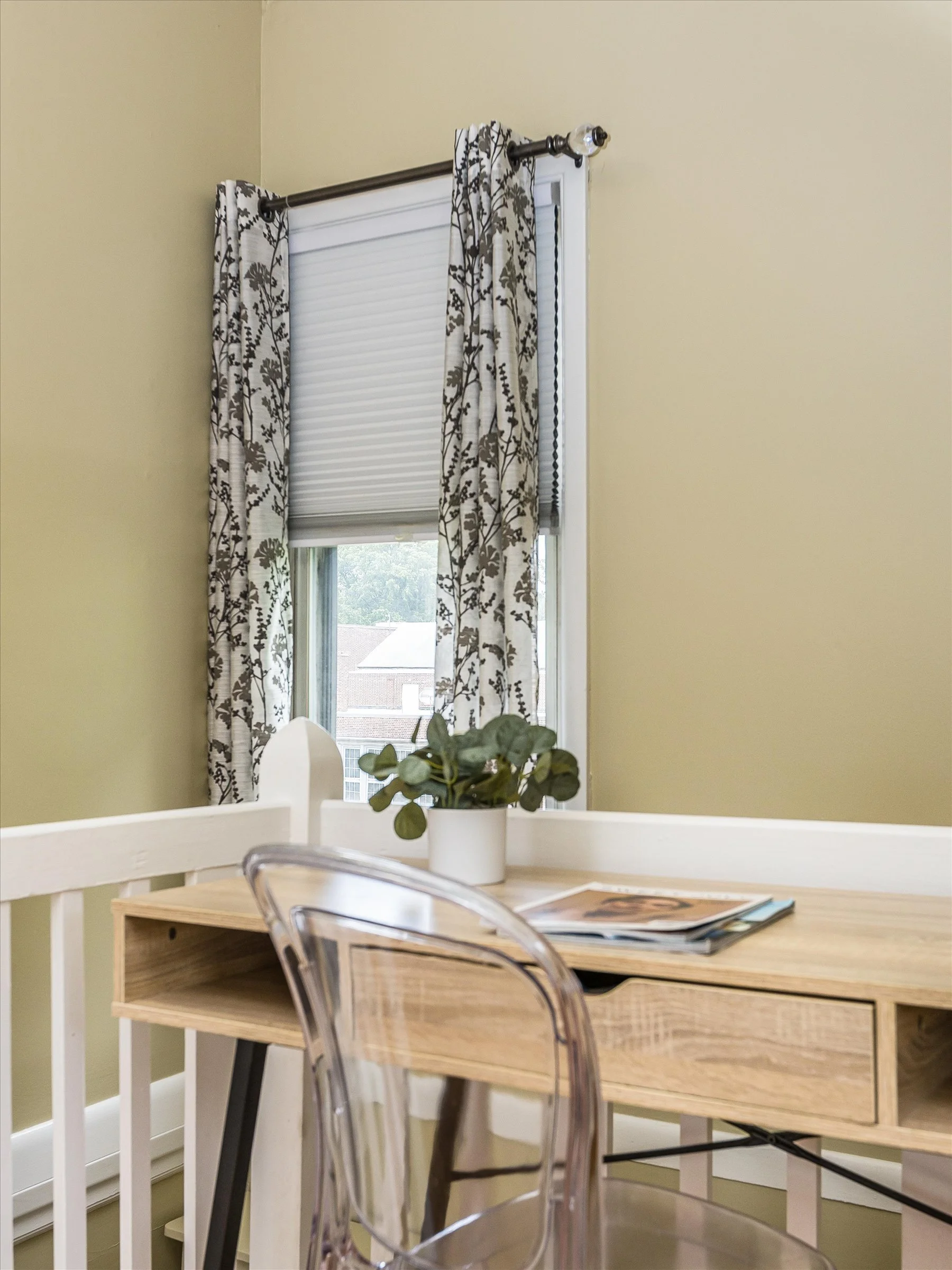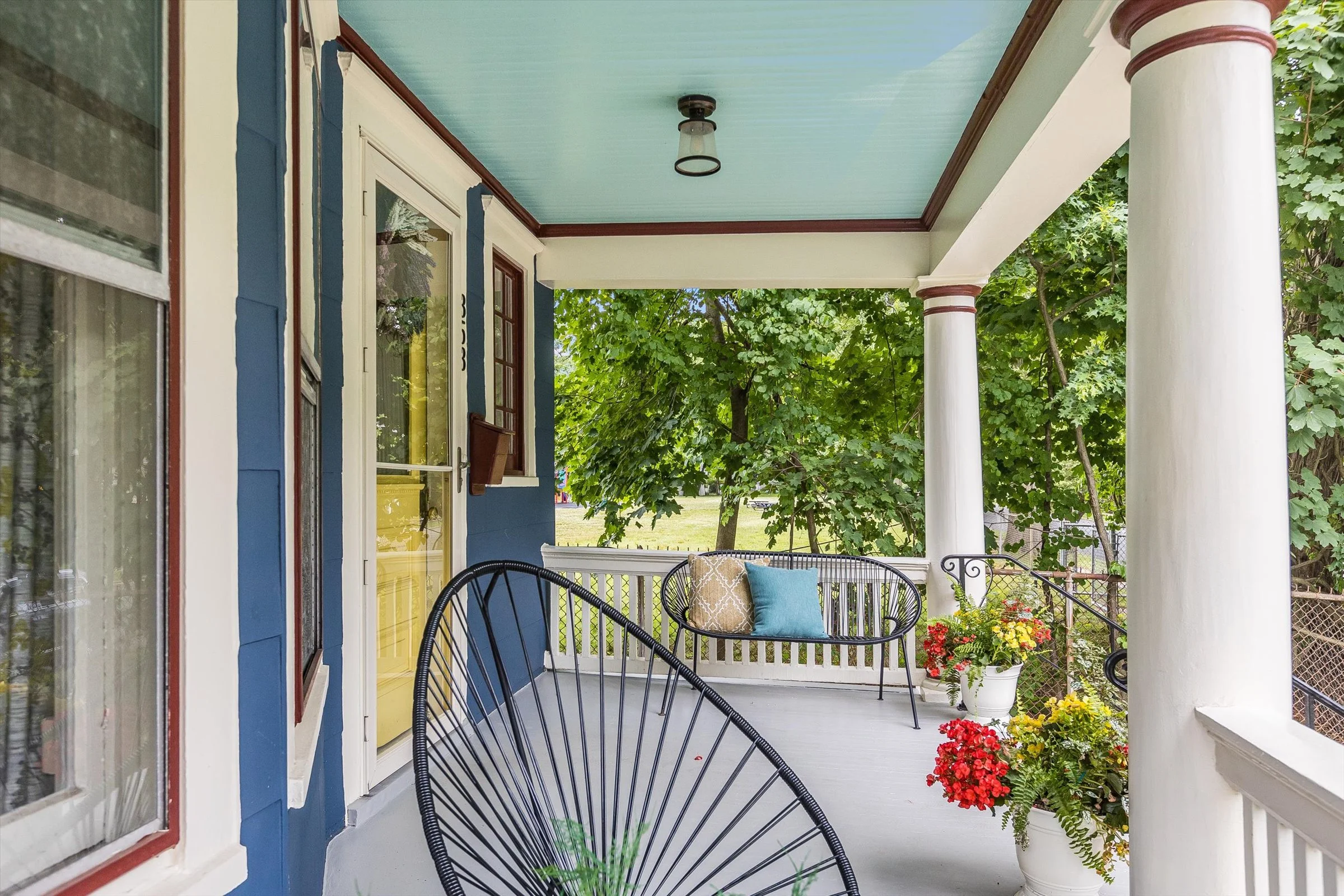 “The backyard is an incredible play and hosting space with a deck (and a slide down from the deck for kids), swingset, and large lawn. The front porch is beautiful and calming. It’s wonderful to sit there (cozy and dry) during a rainstorm, or to chat with a friend on a lovely night. The house is also right next door to Montrose preschool!