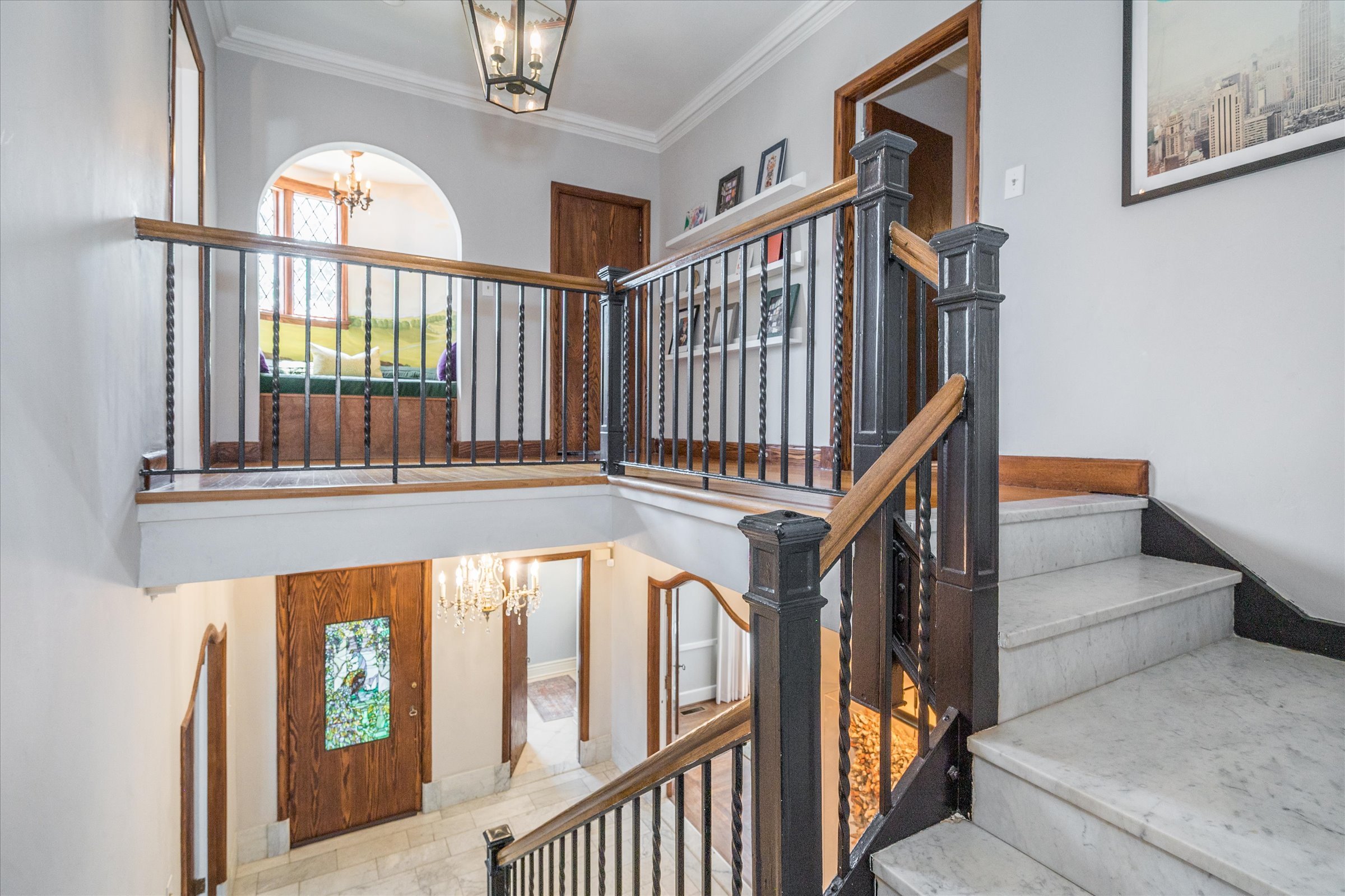 Exquisitely luminous, invigorating & contemporary, this expansive and majestic Victorian Tudor residence gracefully rests atop North Wyoming, establishing itself as one of South Orange's most renowned properties. Offering an impressive total of 7 generously proportioned bedrooms, along with 3 full baths, 2 half baths, a 2-car garage, seasonal glimpses of the New York City skyline, and a myriad of recent enhancements, including a breathtaking newer gourmet kitchen and a luxurious primary bath. This distinguished home showcases an array of custom features, including a sweeping marble staircase, an inviting gas fireplace that emanates warmth, a distinguished slate roof, and an alluring brick exterior. Gleaming hardwood floors, pristine white walls, and an abundance of windows create an ambiance of elegance. Revel in the grandeur of high ceilings and be enveloped by natural light streaming into every corner, enhanced by notable amenities like a convenient first-floor office that opens to the stone patio, and exquisite leaded glass windows. The awe-inspiring lower level presents a state-of-the-art home theater reminiscent of a cinema, as well as an in-home "diner" for the ultimate entertainment experience. Adding to its allure, this remarkable residence is conveniently located less than a block away from the NYC jitney service, ensuring effortless transportation.