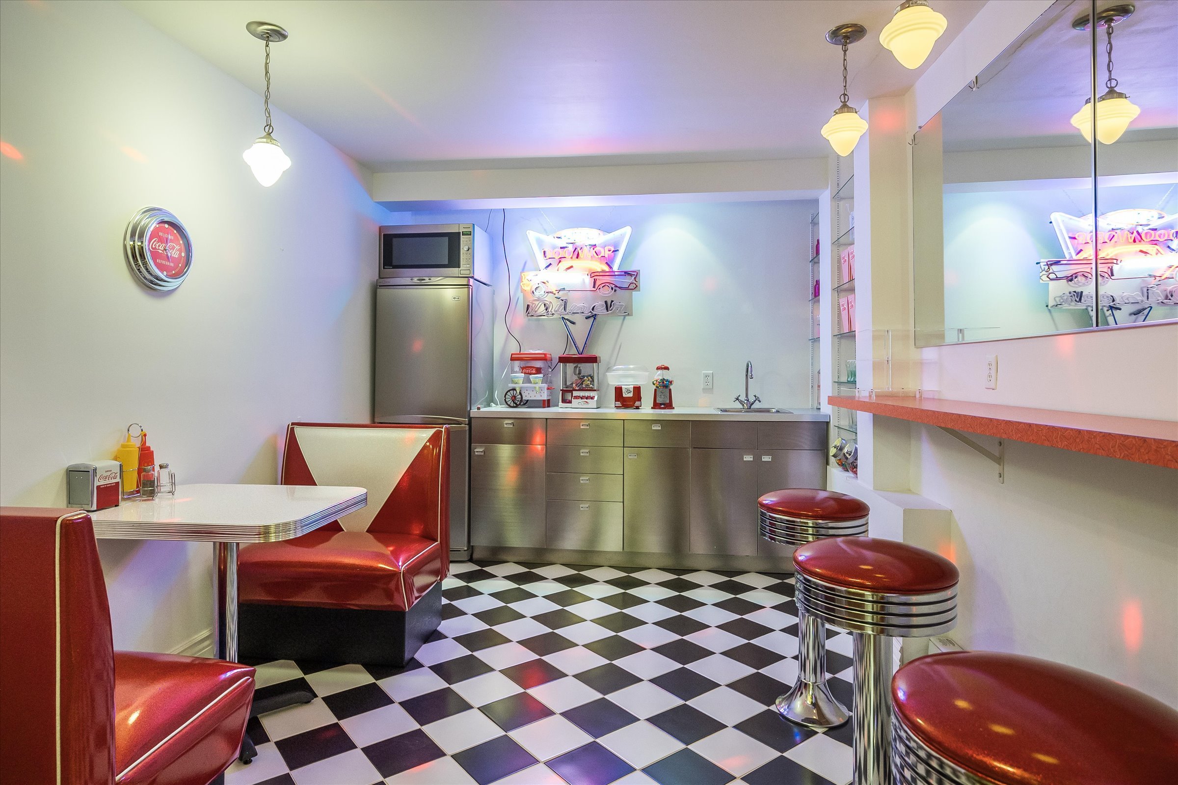 “The lower level of the house is truly awe-inspiring, boasting exceptional features for entertainment. It showcases a state-of-the-art home theater that exudes the grandeur and ambiance reminiscent of a cinema, allowing for an immersive movie-watching experience. Additionally, there is an in-home “diner” area, adding a unique touch to the entertainment offerings. This space creates an inviting atmosphere for gathering and enjoying meals, amplifying the overall entertainment experience within the comfort of one’s own home.”
