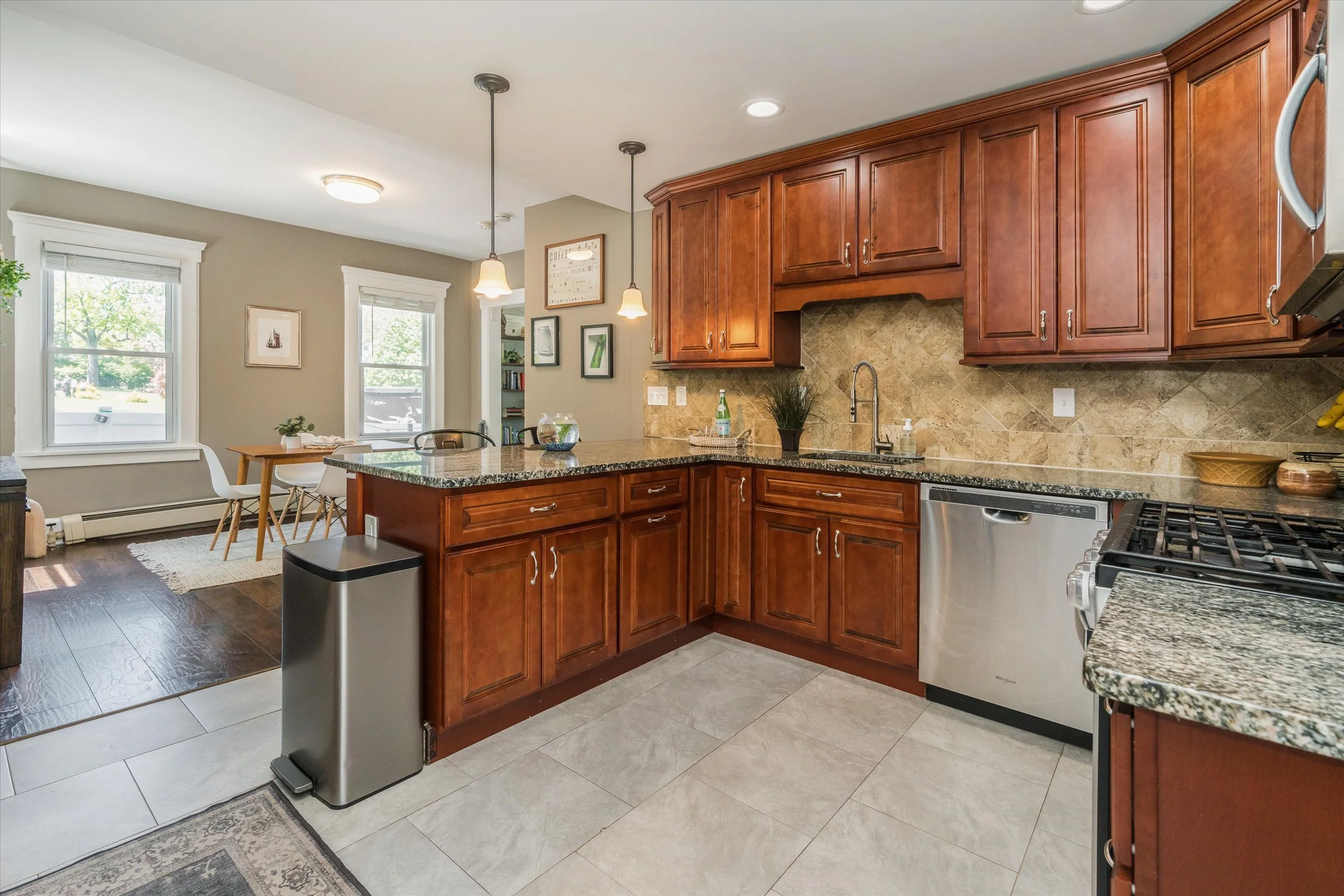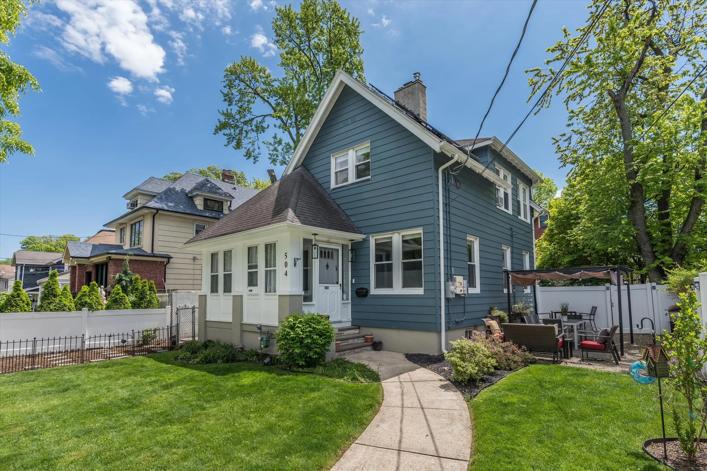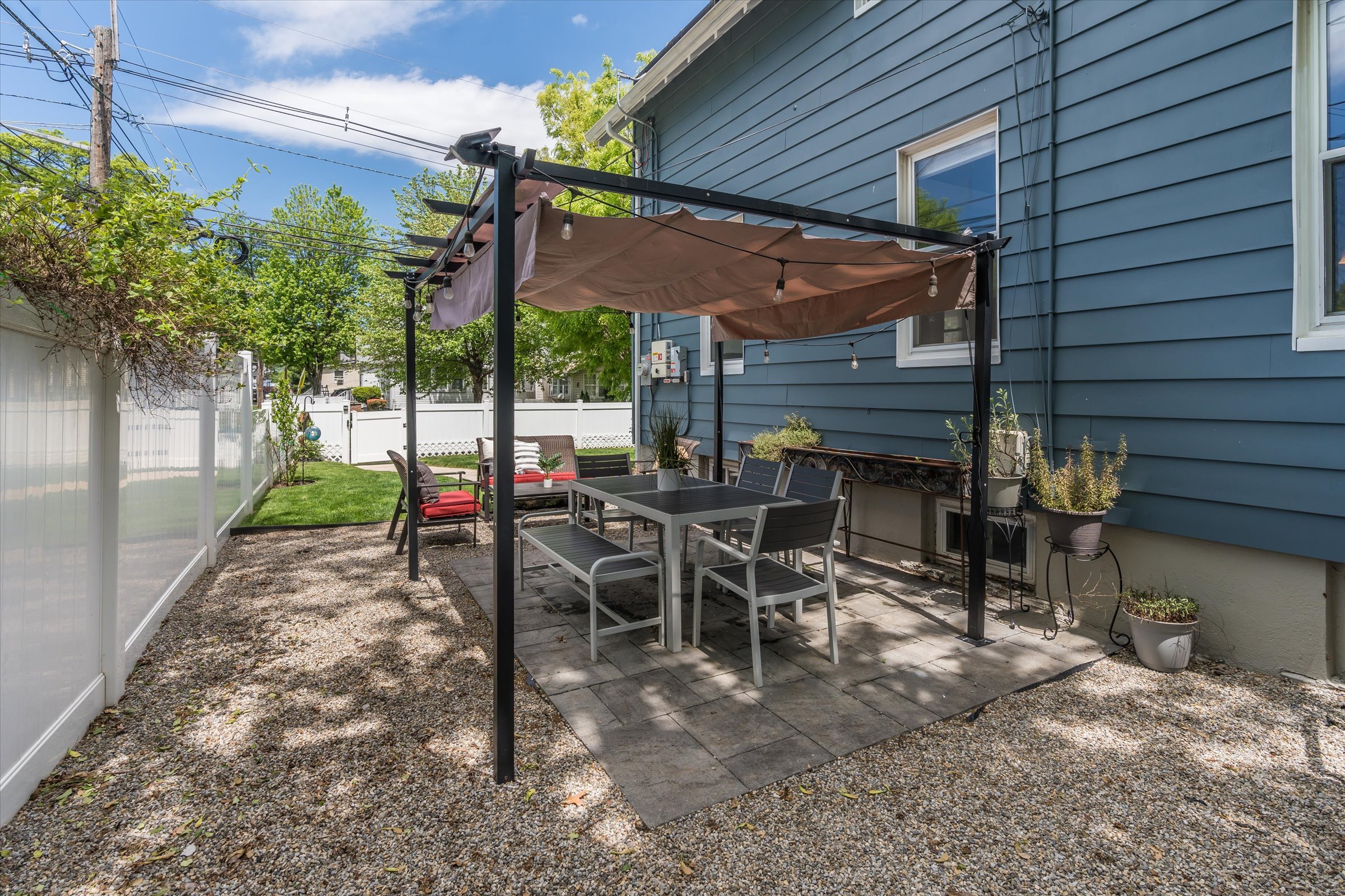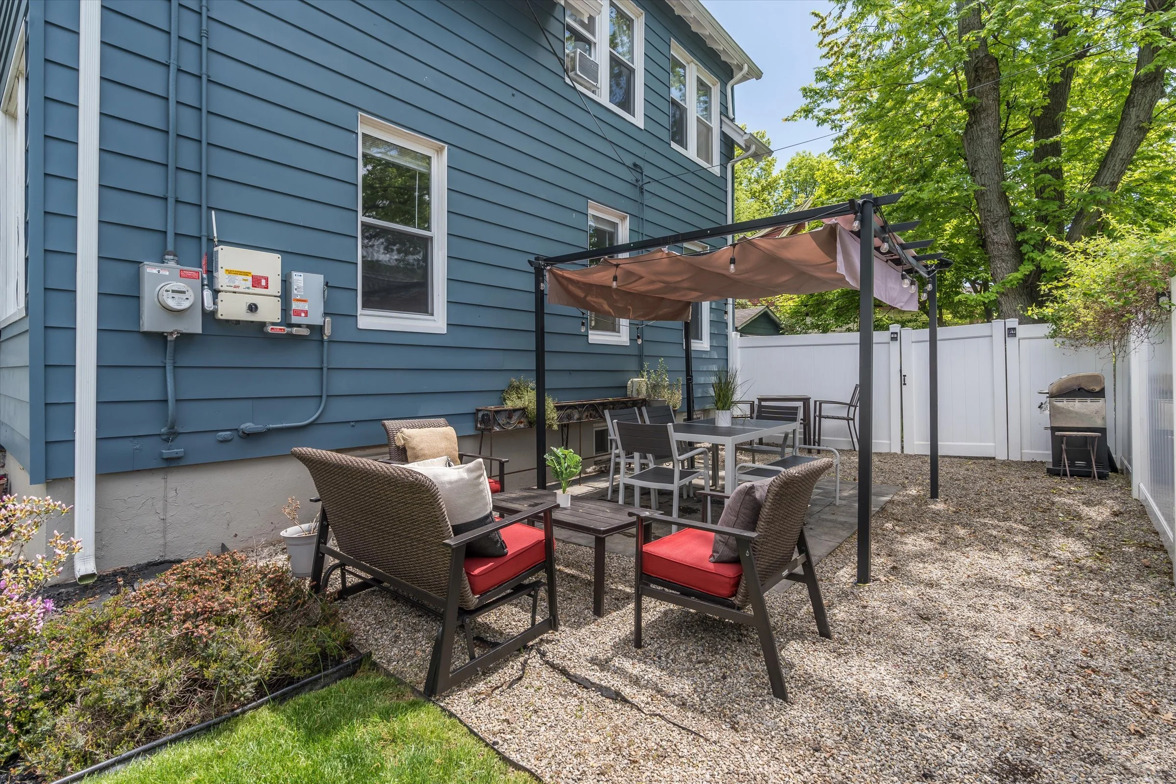 Step outside through the modern mudroom to discover a meticulously landscaped outdoor oasis, complete with a privacy fence and charming pergola—perfect for entertaining and play alike. Additional highlights include a new boiler, hot water heater, and electrical panel, ensuring peace of mind for years to come.