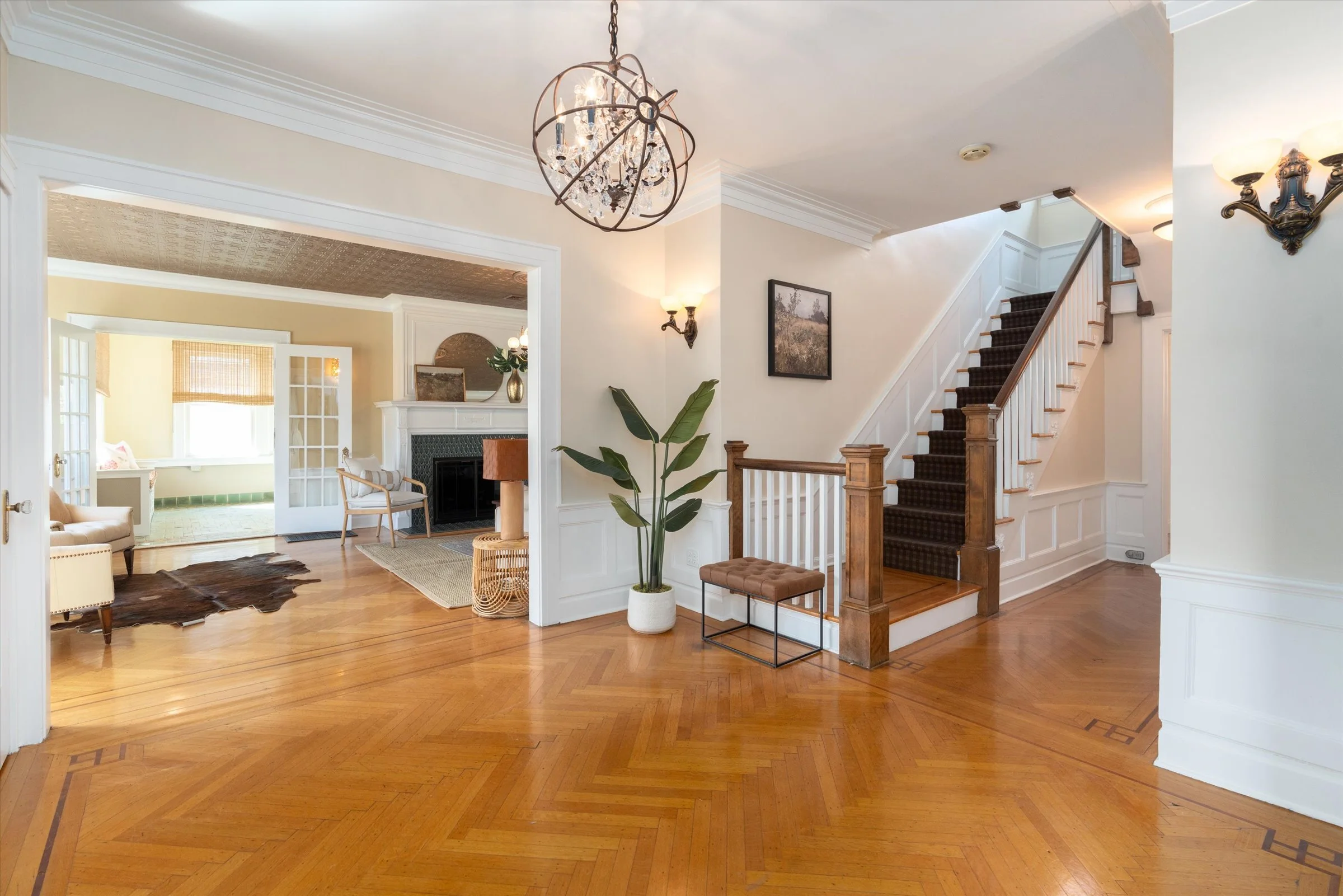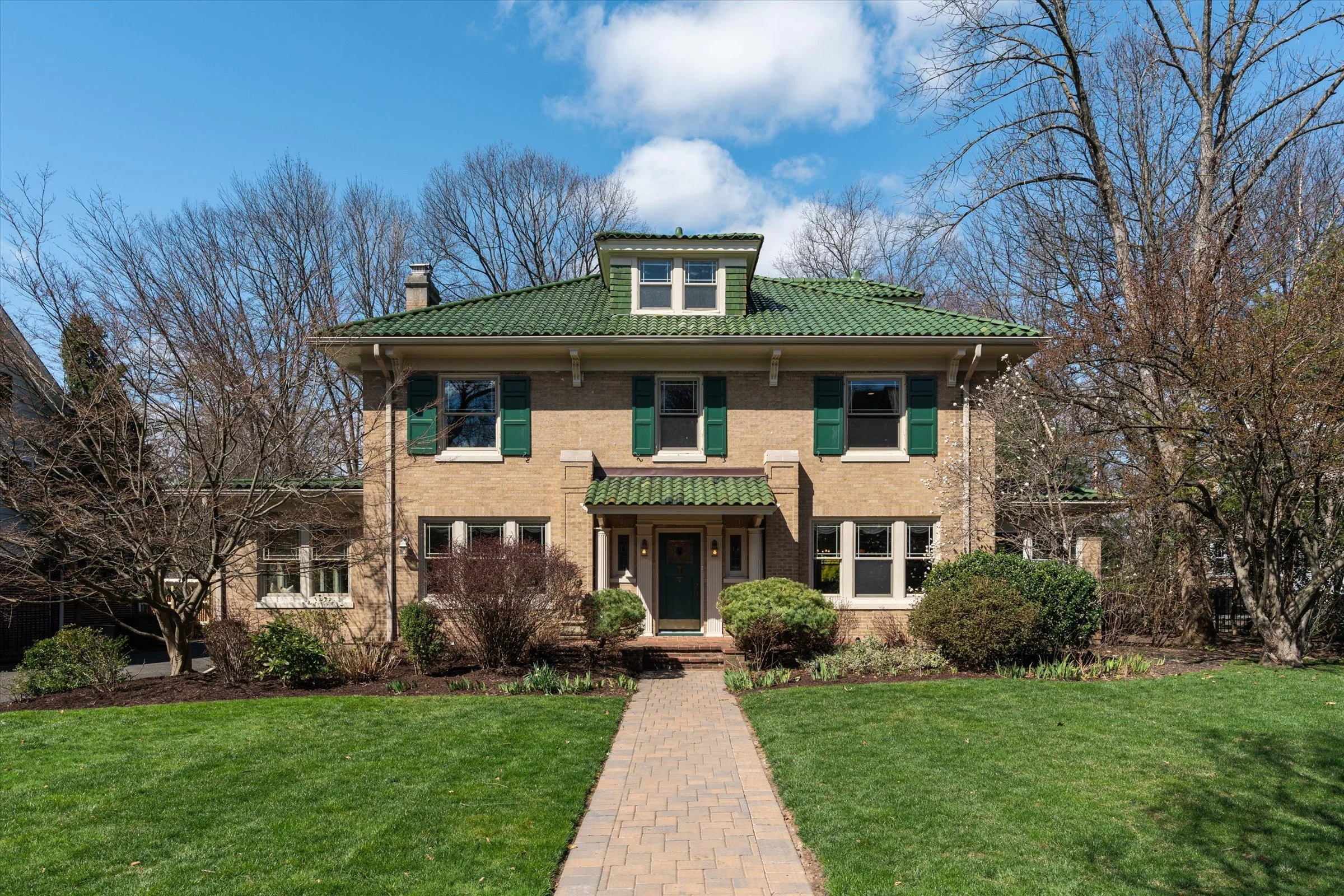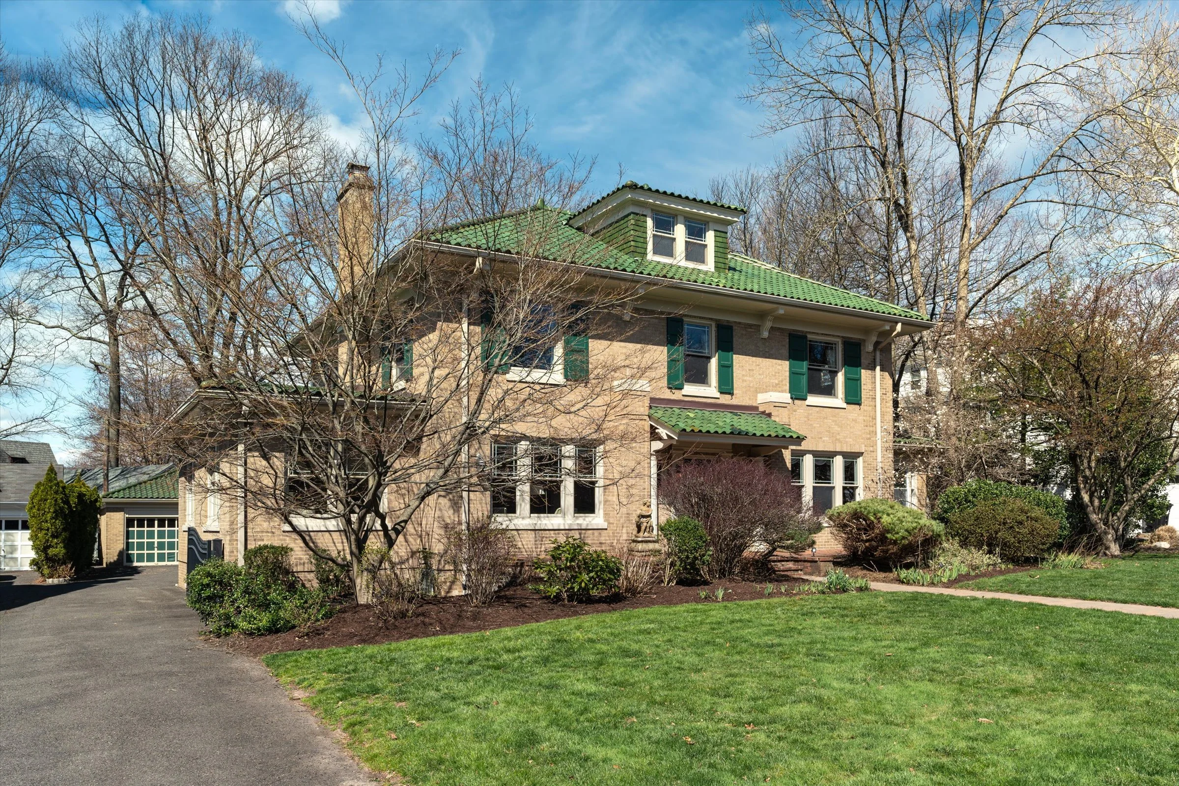 Welcome to this exquisite home boasting timeless elegance and modern comforts,. Just .5 miles from Memorial Park and the quaint shops and restaurants that downtown has to offer! With 5 beds and 4.5 baths, this home is a masterpiece of architectural beauty crowned w a show stopping Green French Field Ludowici Tiled Roof. Step into the inviting living space which radiates charm and craftsmanship! Herringbone wood floors w ribbon borders, wood burning & gas fireplaces, original period built-ins w stained glass, high-end Pella windows, and stunning wood molding are spectacular. The incredible sunroom offers a serene retreat with built-in window seats & orig green tile floor. Flow thru the dining room to the expansive eat-in kitchen where entertaining is a dream! Large island, SS Viking appliances and stone countertops make cooking a joy. Throughout the house, the lighting has been meticulously curated to honor the era while ensuring modern convenience. The Primary EnSuite is a sanctuary & all 4 BDRMs feature stained glass transom windows. The 3rd fl boasts a 5th bdrm, full bath & tremendous storage. The finished basement is akin to a private apartment, complete with a bathroom, bar area, and gym. Don't miss the opportunity to own this GEM, where charm meets contemporary luxury. Close to the train to NYC & Maplewood events such as 4th of July fireworks, & Maplewoodstock- this is the community and location that simply can't be beaten!