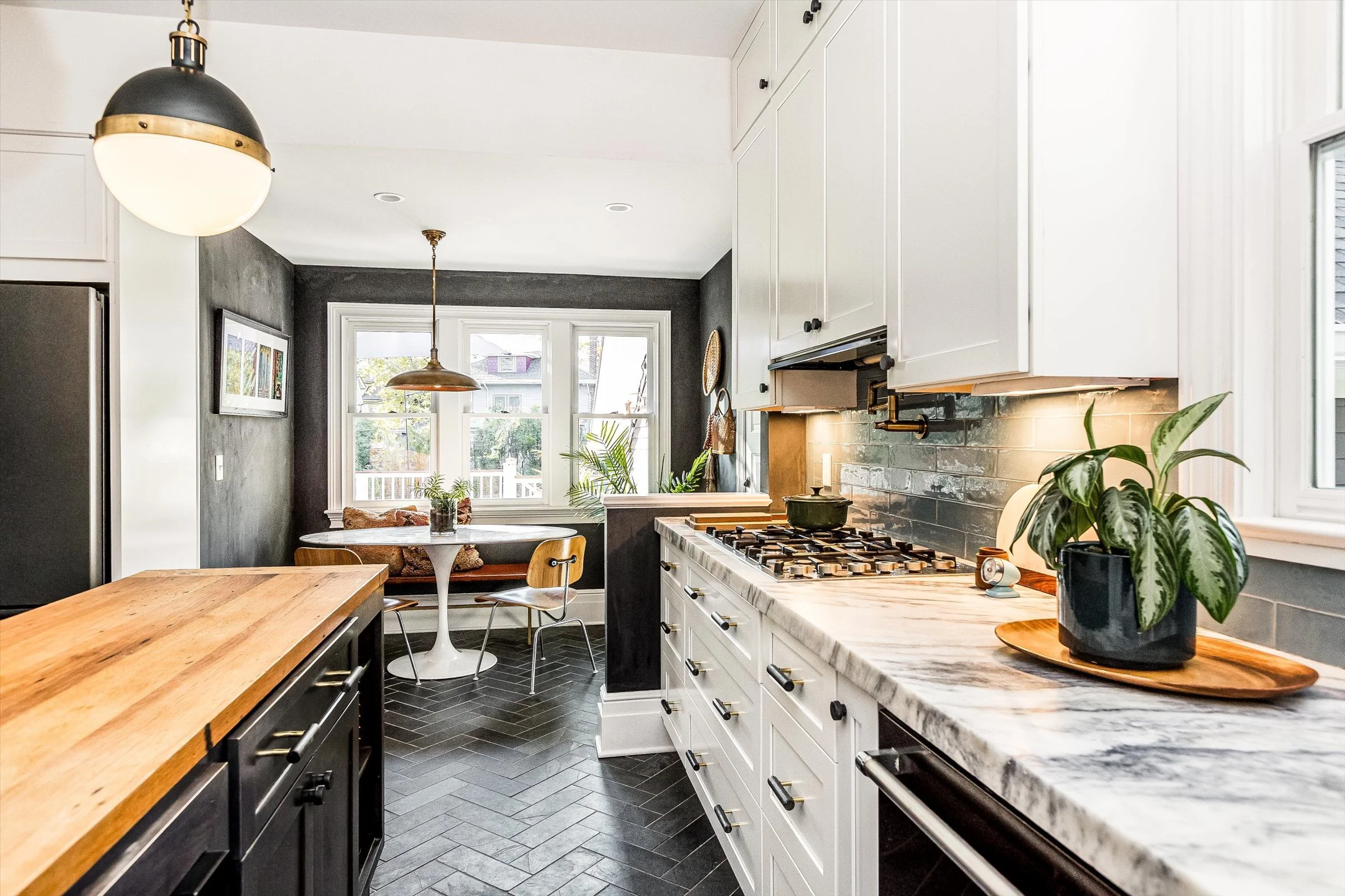 Welcome to 695 Prospect St, a stunning designer’s showcase where historic charm meets modern luxury. This enchanting 1890 Victorian home captivates with its Foursquare architecture & exquisite original features, including soaring high ceilings, grand windows, elegant 6-panel doors, & intricate cove ceilings. Beautifully restored inlaid hardwood floors add timeless elegance throughout. At the heart of the home is a gourmet kitchen, outfitted with Fabuwood cabinets, luxurious marble countertops, & top-of-the-line Bosch appliances, including a double oven. The primary suite serves as a true sanctuary, featuring an opulent marble-tiled en suite bathroom & a custom closet system. Meticulously renovated, this residence boasts significant updates that enhance its allure. In 2024, the entire slate roof was expertly renovated, accompanied by new gutters. A charming pea gravel driveway with Belgian block surrounds leads to a newly constructed attached garage, complete with an EV charging port. Step outside to discover thoughtfully designed outdoor areas, including an original bluestone walkway, front porch, and large back deck. Additional enhancements, such as a two-zone HVAC system & upgraded plumbing & electrical, ensure comfort & functionality. Surrounded by lush greenery & conveniently located near schools, Village & train, this Victorian masterpiece invites you to indulge in the best of both worlds—historic elegance & modern living.