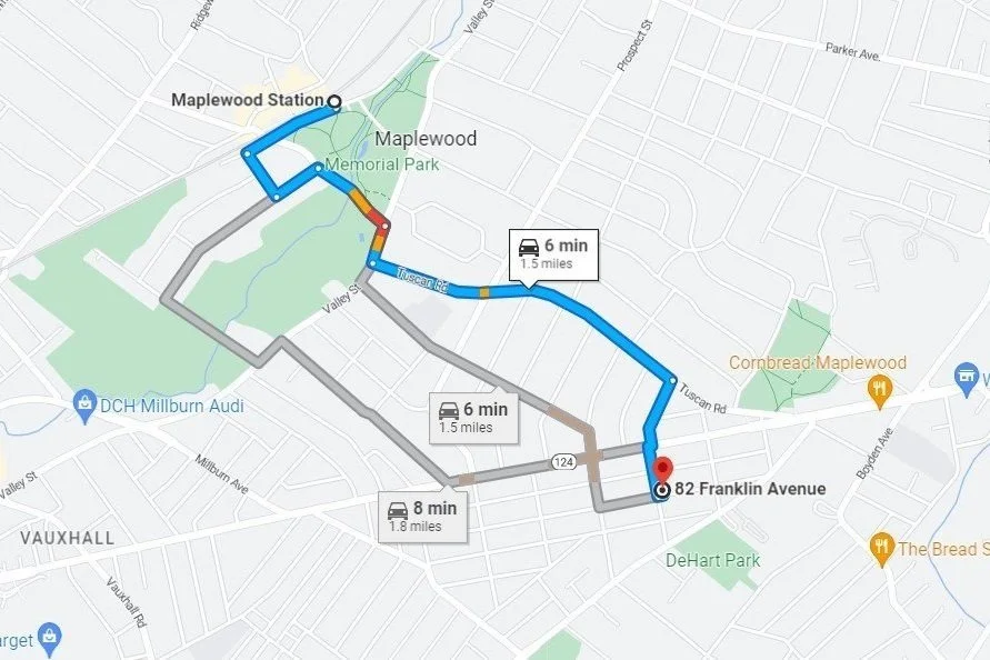 One block from Maplewood Jitney stop which takes you directly to the Maplewood train station. Access 30-minute express trains into NYC.